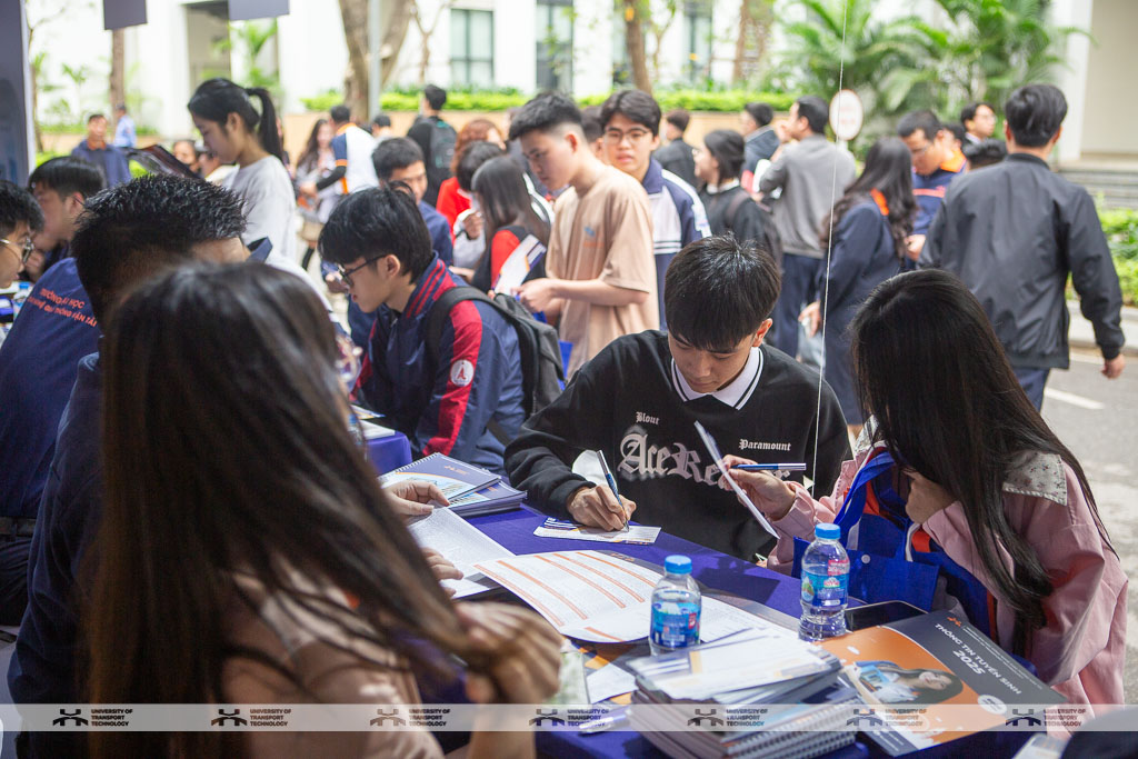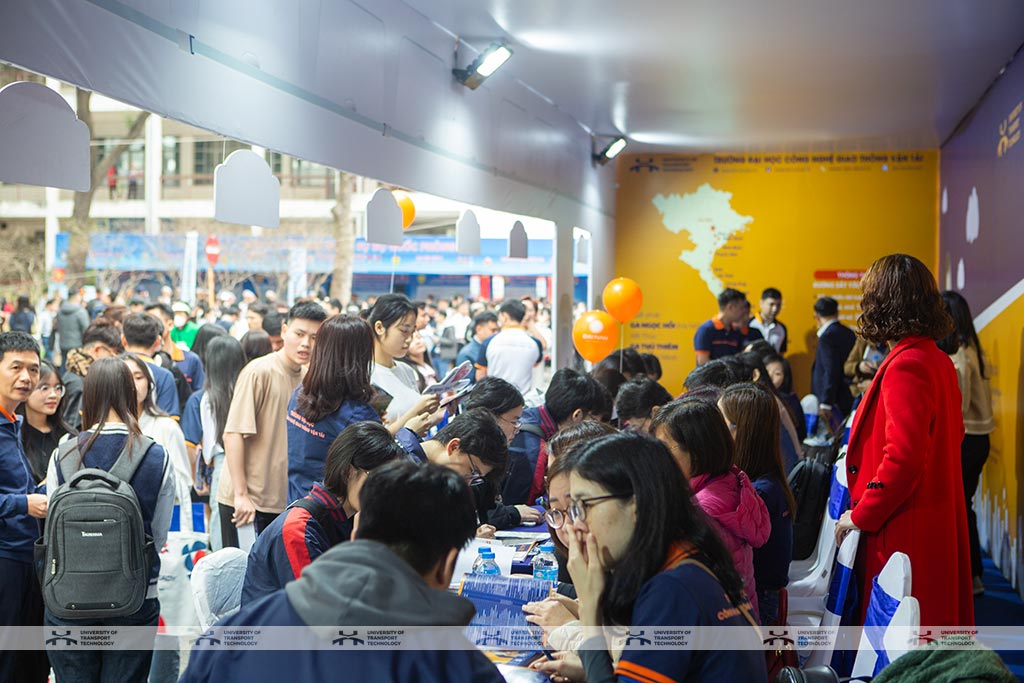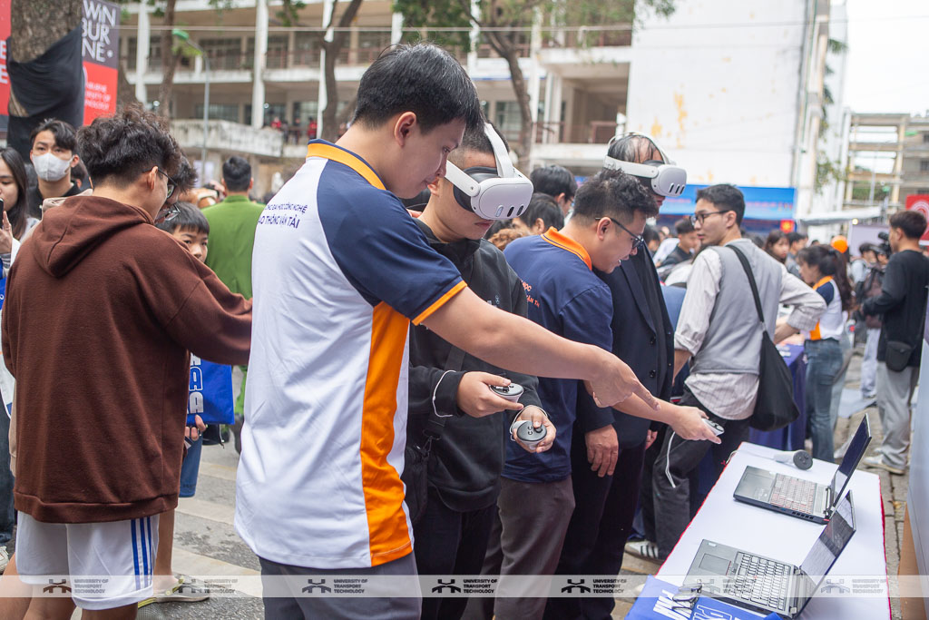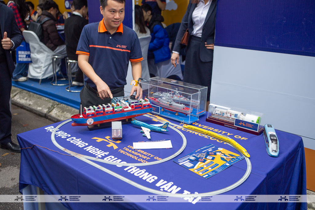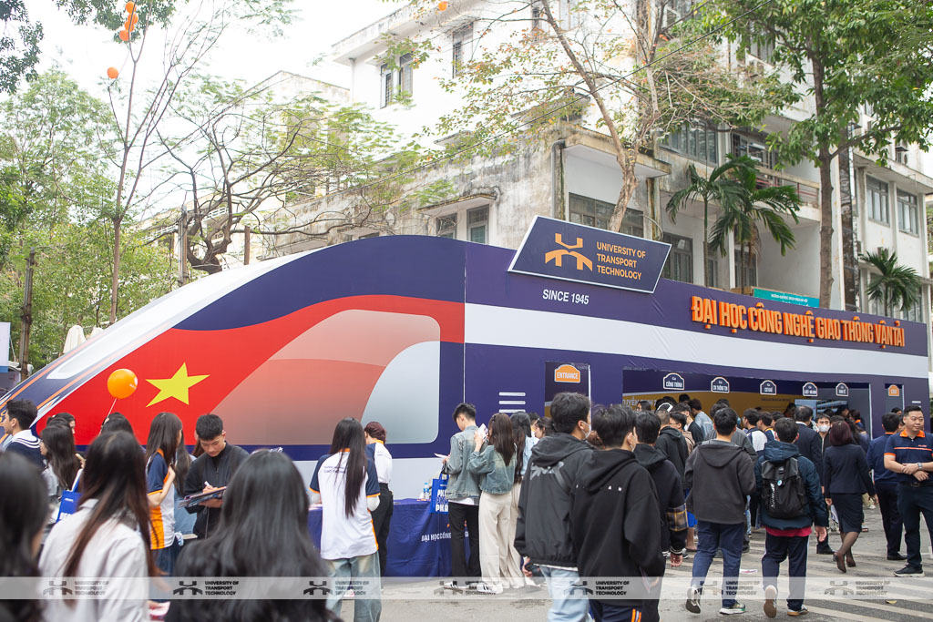 Gian hàng tư vấn của UTT thu hút đông đảo sự quan tâm từ học sinh và phụ huynh. Điểm nhấn của gian hàng năm nay là mô hình tàu cao tốc kích thước lớn, bên cạnh có trưng bày mô phỏng tàu đường sắt tốc độ cao và các mô hình tàu thủy container cỡ lớn có thể vận hành - sản phẩm sáng tạo của giảng viên và sinh viên UTT, mang đến trải nghiệm thú vị cho những bạn yêu thích khoa học và công nghệ.