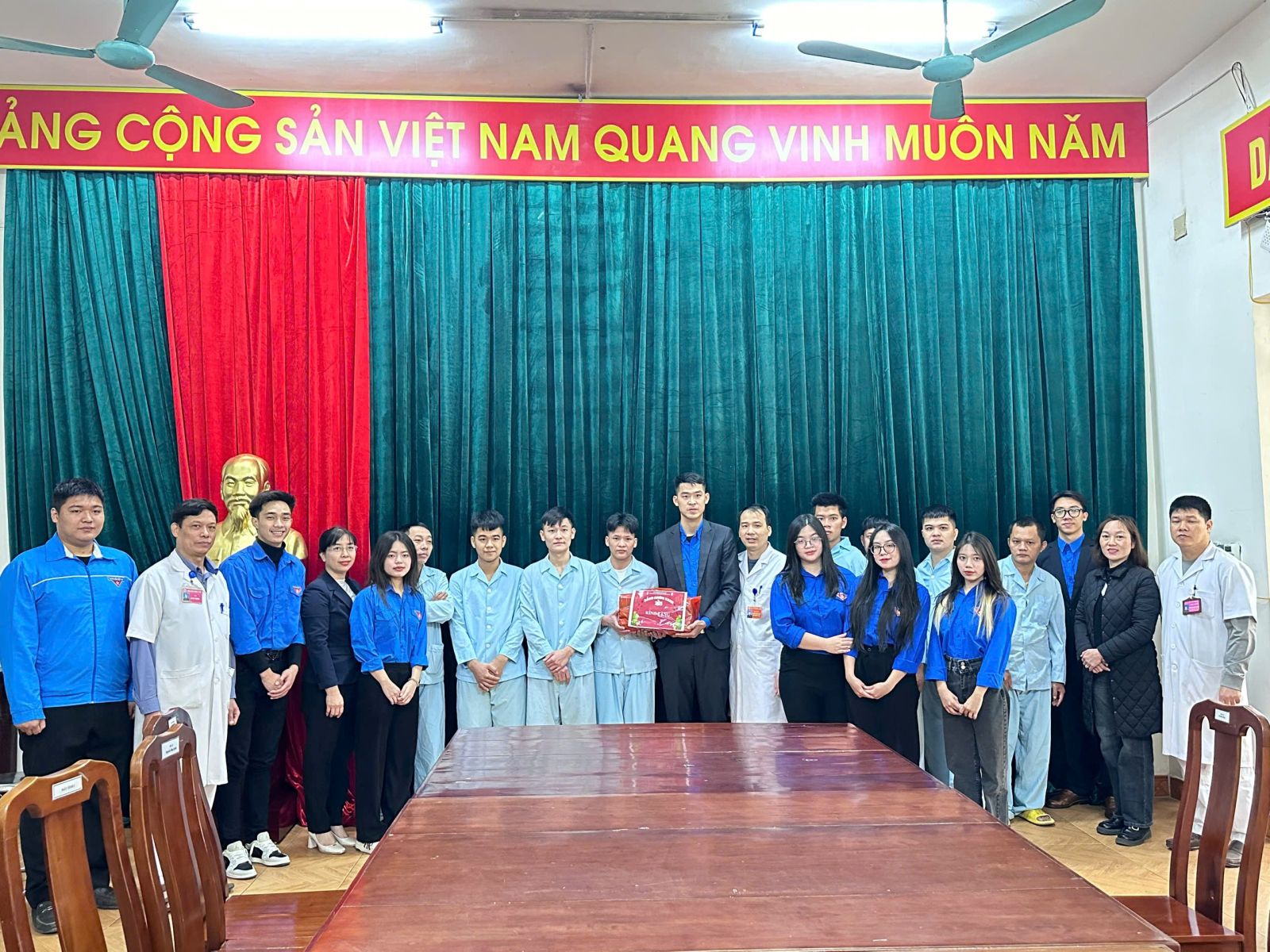 Đại diện Đoàn Thanh niên Trường Đại học Công nghệ GTVT tặng quà Tết tại bệnh viên Quân y 109