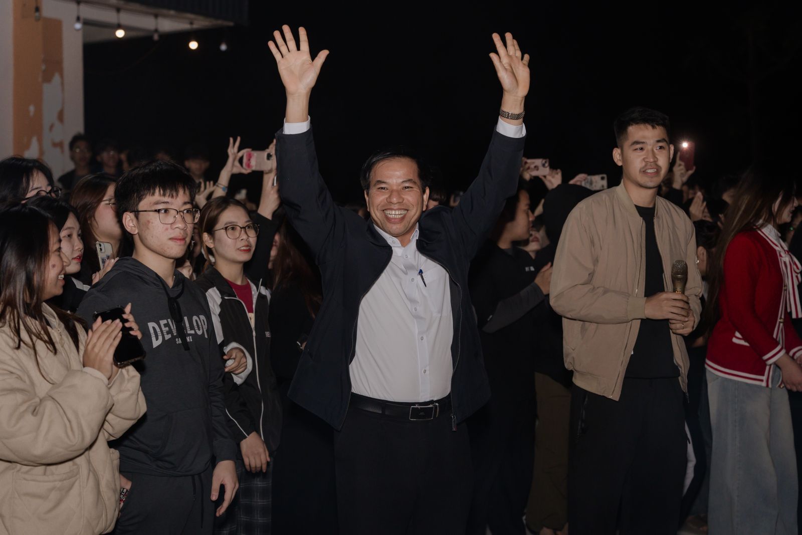 TS. Vương Văn Sơn, Giám đốc Trung tâm QPAN – GDTC tham gia chung vui cùng các em sinh viên