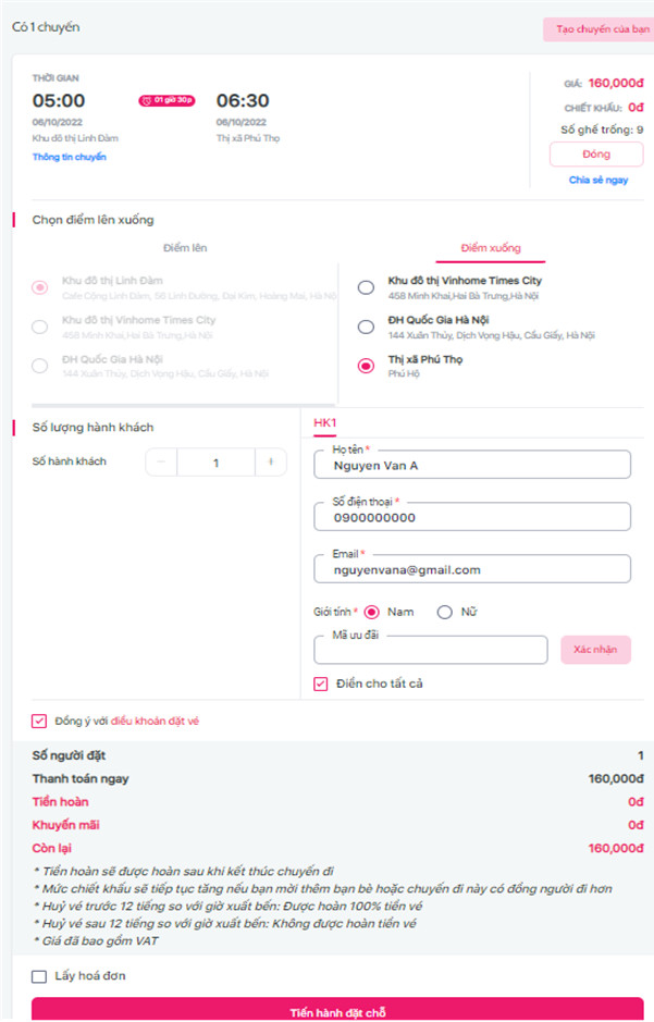 Bằng những thao tác cực đơn giản và nhanh chóng, khách hàng chỉ cần chọn cho mình một lộ trình phù hợp cùng thời gian muốn đi. Giá tốt nhất tại thời điểm đặt được hiển thị và thao tác thanh toán nhanh chóng giúp người mua ko cần lo lắng xem mình đã thanh toán thành công chưa. Hệ thống trả ngay thông báo xác nhận vé thông qua QR code chỉ cần scan mã QR code trên AppKbus cho tài xế mà không cần phải xếp hàng chen lấn nhau, cùng rủ nhau đi càng đông giá sẽ càng rẻ, kết thục chuyến đi khách hàng sẽ được hoàn tiền ngay để sử dụng cho lần đi tới. Cam kết chắc chắn có vị trí ngồi tốt nhất trên xe.