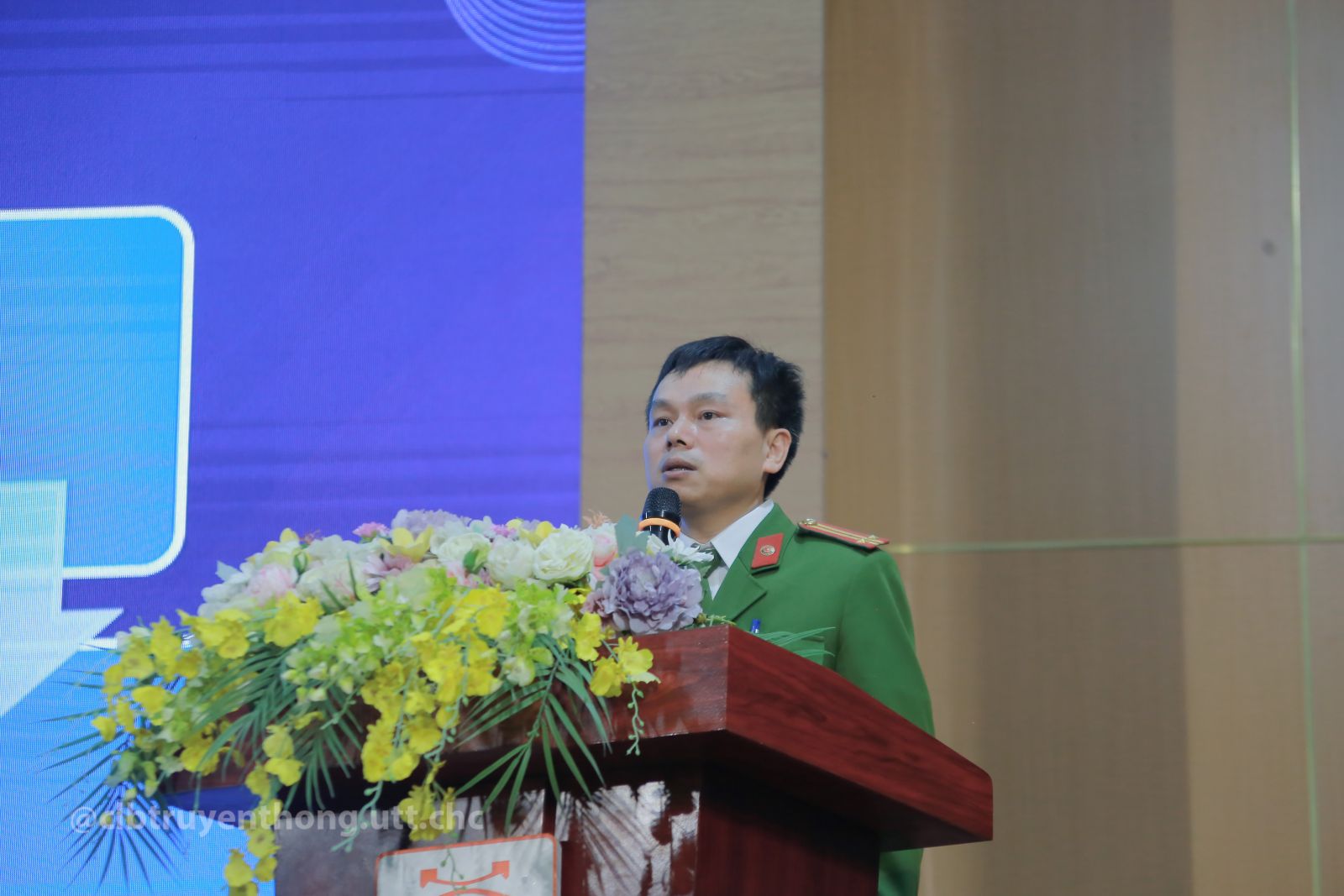 Trung tá Phạm Quốc Việt - Phó trưởng Công an Phường Thanh Xuân Nam chia sẻ các kiến thức về phòng, chống tội phạm trộm cắp tài sản và lừa đảo chiếm đoạt tài sản cho sinh viên
