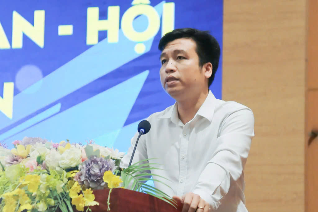 Đồng chí Phùng Công Dũng - Phó Bí thư Đoàn Thanh niên, Chủ tịch Hội sinh viên Trường phát biểu tại buổi tập huấn