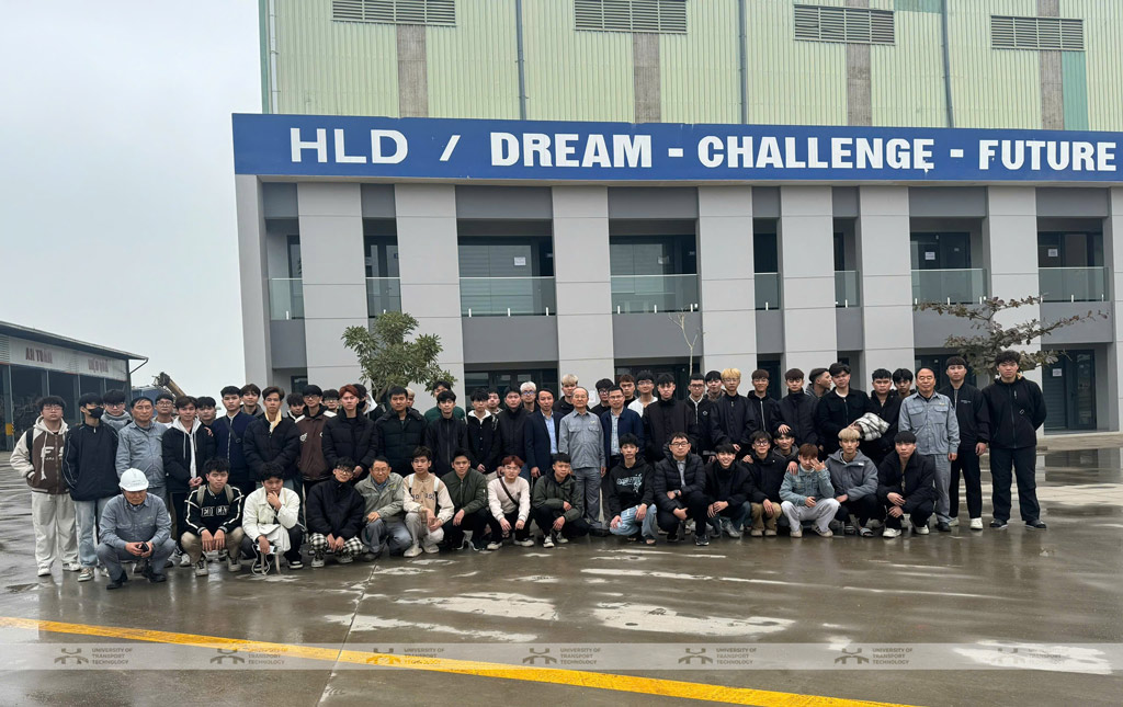 Đoàn tham quan thực tế của Trường Đại học Công nghệ GTVT có TS. Nguyễn Công Đoàn – Trưởng bộ môn, các giảng viên của Bộ môn Tàu thủy và Thiết bị nổi, các sinh viên đại học chính quy K75 ngành Công nghệ kỹ thuật cơ khí.