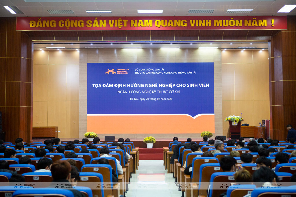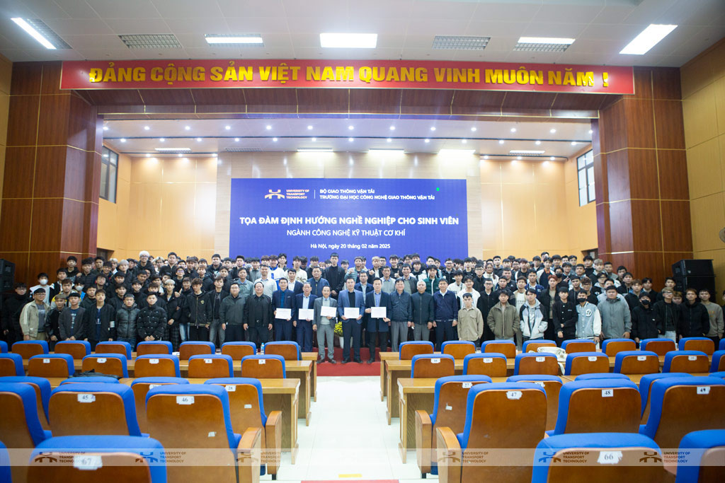 Nhằm định hướng nghề nghiệp và tăng cường sự kết nối giữa sinh viên với doanh nghiệp, ngày 20/02, Trường Đại học Công nghệ GTVT đã tổ chức chương trình tọa đàm: "Định hướng nghề nghiệp cho sinh viên ngành Công nghệ Kỹ thuật Cơ khí".