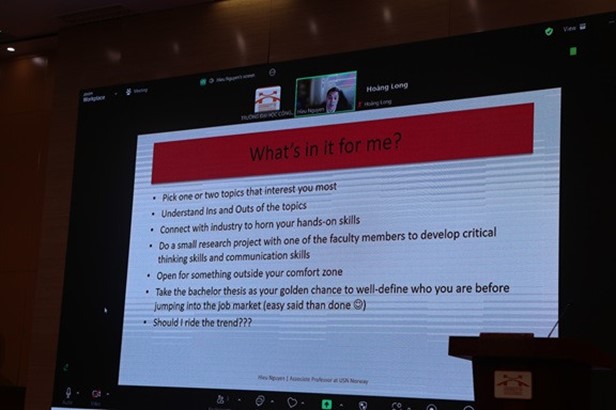 Buổi Toạ đàm kết hợp cả hình thức trực tuyến với phần trình bày từ nước ngoài của PGS.TS. Nguyễn Trung Hiếu, trường đại học Đông nam Na Uy (USN)