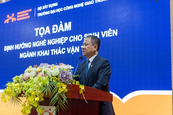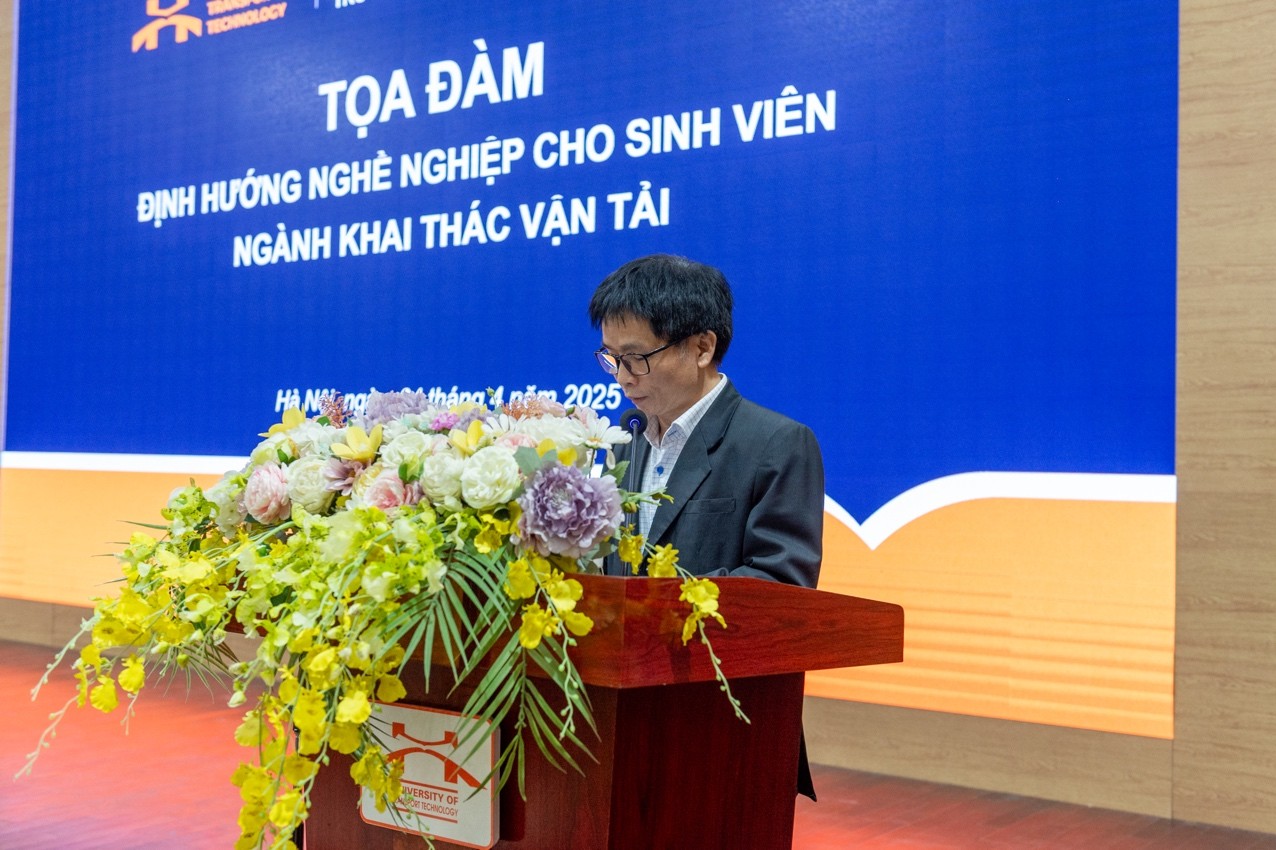 Phát biểu tại chương trình, TS. Hoàng Văn Lâm - Phó Trưởng hoa Kinh tế vận tải nhấn mạnh nhu cầu về nguồn nhân lực chất lượng cao trong lĩnh vực khai thác vận tải. Khoa Kinh tế vận tải, Trường Đại học Công nghệ GTVT luôn chú trọng đổi mới chương trình đào tạo, gắn lý thuyết với thực tiễn, hợp tác chặt chẽ với doanh nghiệp thực hiện triết lý giáo dục “Ứng dụng - Thực học - Thực nghiệp".