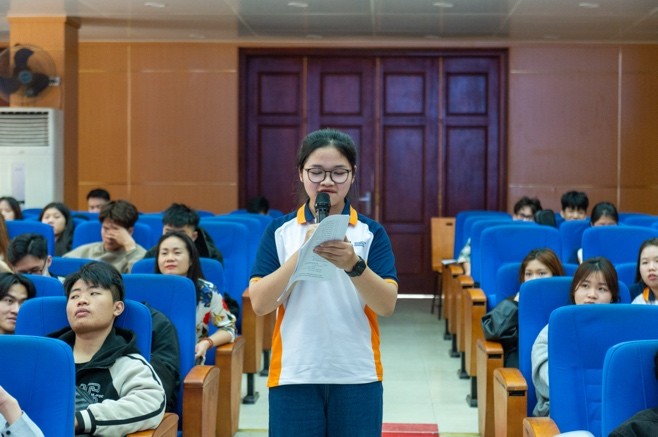 Sinh viên tham gia trao đổi, thảo luận tại buổi tọa đàm