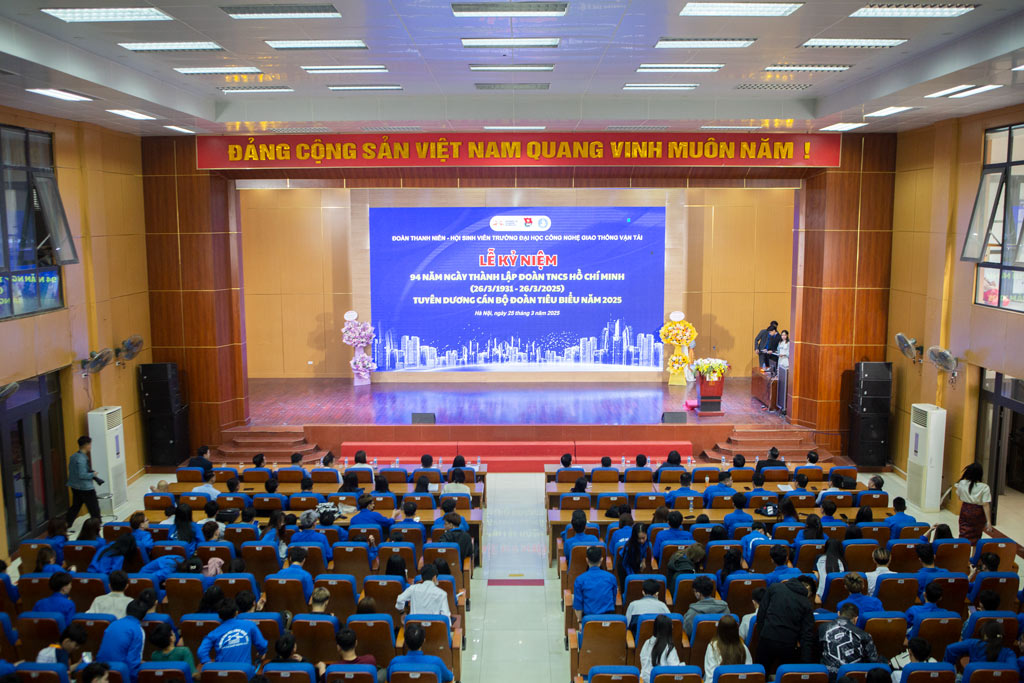 Ngày 25/3, Trường Đại học Công nghệ Giao thông Vận tải long trọng tổ chức Lễ kỷ niệm 94 năm Ngày thành lập Đoàn TNCS Hồ Chí Minh (26/3/1931 – 26/3/2025) và Tuyên dương Cán bộ Đoàn tiêu biểu năm 2025.