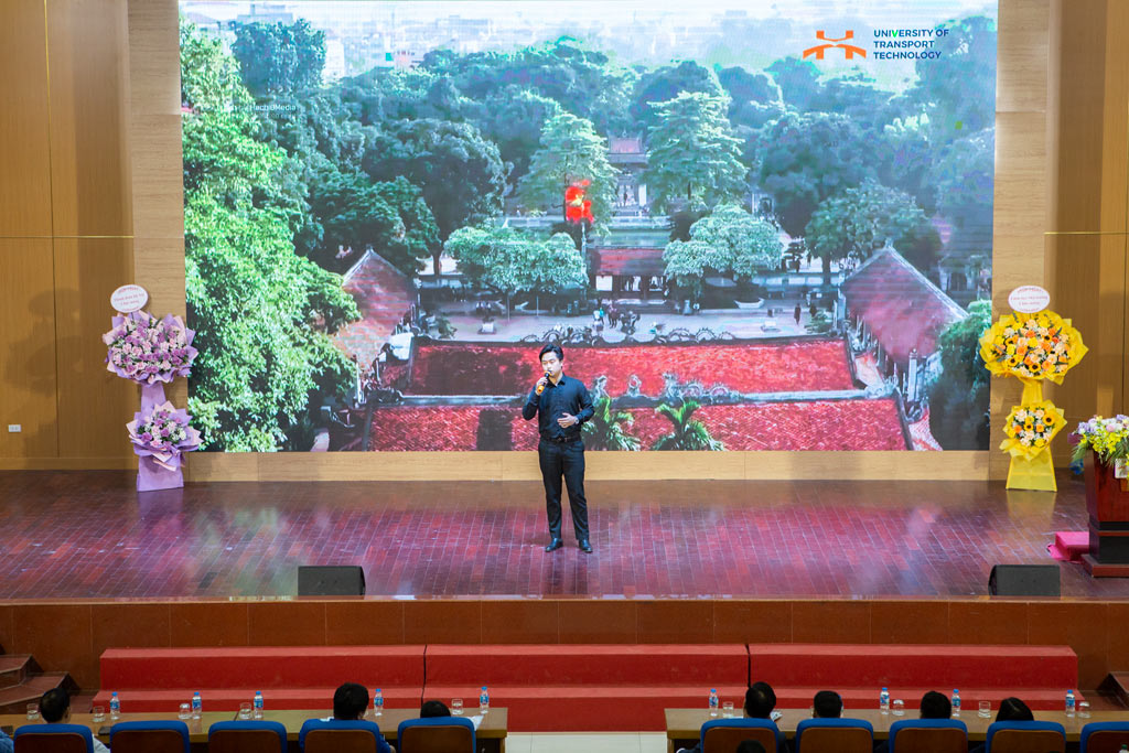 Đồng chí Phùng Công Dũng – Bí thư Đoàn Trường - Chủ tịch Hội Sinh viên nhấn mạnh vai trò của Đoàn TNCS Hồ Chí Minh trong suốt 94 năm qua và tinh thần xung kích, sáng tạo của Đoàn Thanh niên Trường Đại học Công nghệ GTVT. Đồng chí khẳng định Đoàn Trường luôn đổi mới, tổ chức các hoạt động ý nghĩa giúp sinh viên phát triển toàn diện. Đặc biệt, cuộc thi "Cán bộ Đoàn giỏi" không chỉ tạo sân chơi bổ ích mà còn góp phần nâng cao chất lượng cán bộ Đoàn. Trong thời gian tới, Đoàn Trường sẽ tiếp tục mở rộng hoạt động, đồng hành cùng sinh viên, khuyến khích tinh thần trách nhiệm, học hỏi và cống hiến vì sự phát triển của Nhà trường và xã hội.