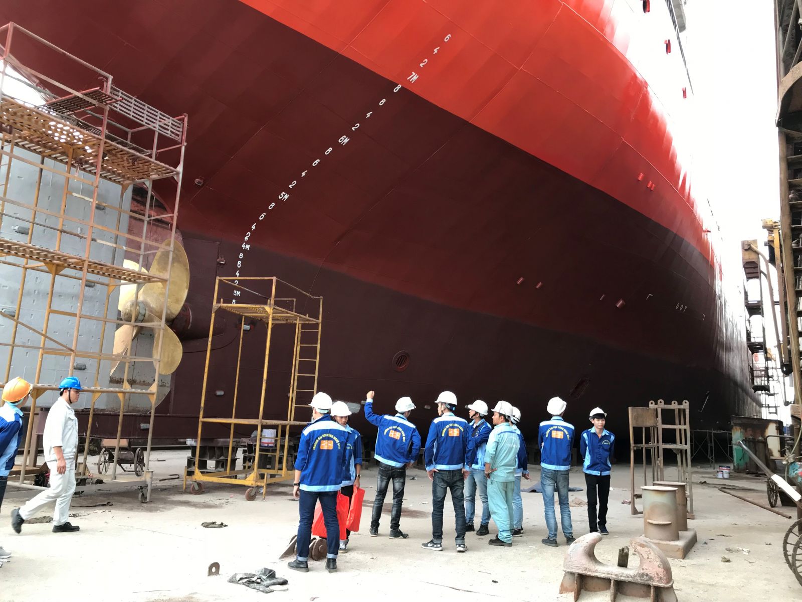 Sinh viên được giới thiệu và tham quan các con tàu đang được đóng mới, hệ thống nhà xưởng, kho bãi, cầu cảng, trang thiết bị sản xuất. Nhà xưởng phục vụ gia công lắp ráp phân tổng đoạn được trang bị các thiết bị chuyên dụng gia công, máy lốc tôn, máy ép thủy lực, máy uốn thép hình, máy cắt CNC, máy hàn tự động v.v…Hiện tại, Công ty cũng là nơi các sinh viên Khóa 64 Chuyên ngành CNKT Cơ khí Máy tàu thủy thực tập chuyên ngành và thực tập tốt nghiệp dưới sự hướng dẫn tận tình của các kỹ thuật viên của nhà máy.