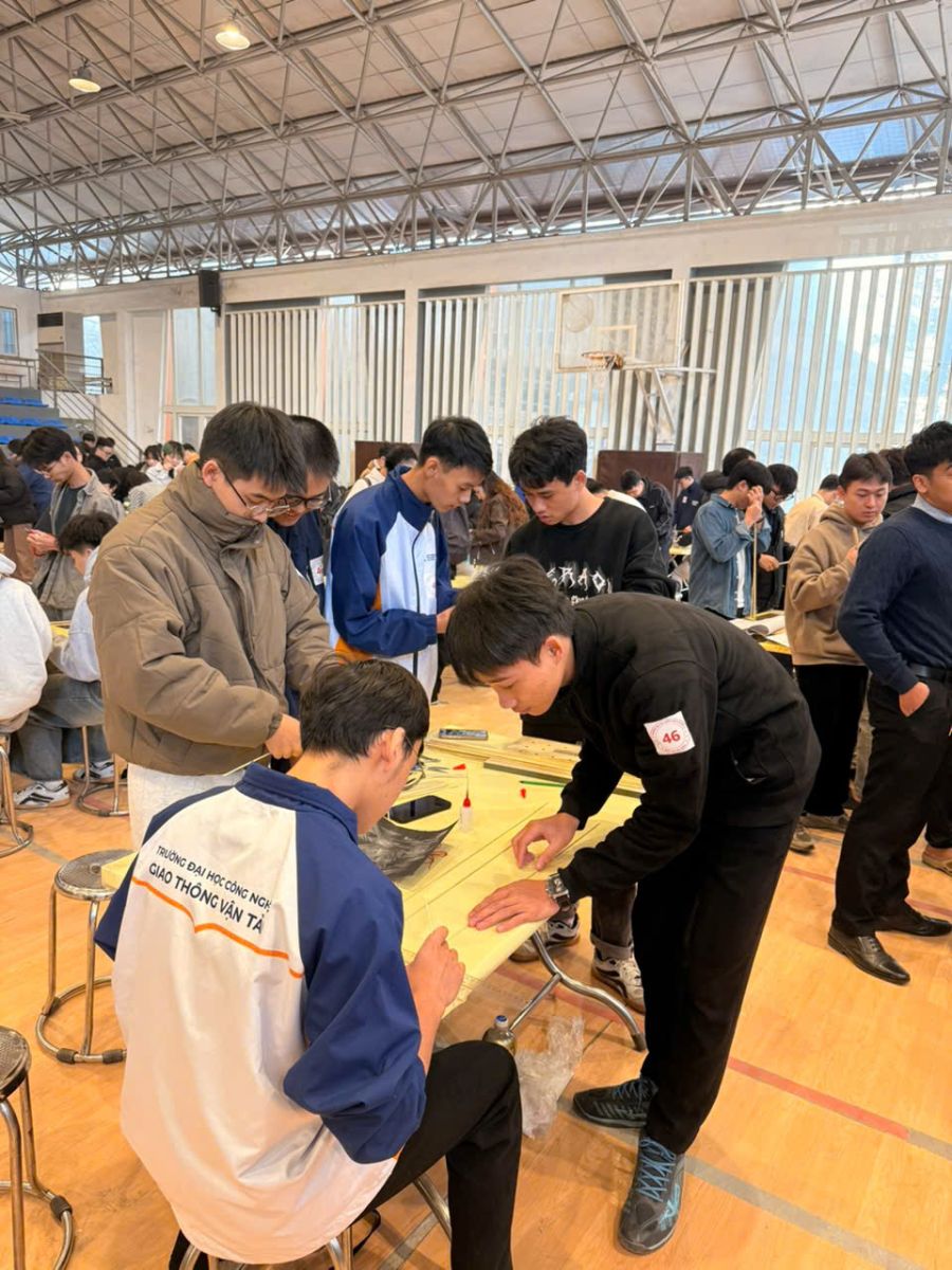 Đại diện Trường Đại học Công nghệ GTVT, nhóm 06 sinh viên gồm: Đinh Nhuận Bách, Nguyễn Bá Diệp, Nguyễn Đức Huy Hoàng, Nguyễn Duy Ánh, Nguyễn Tiến Trung và Nguyễn Như Thành (lớp 74DCDD21, ngành CNKT Công trình Xây dựng Dân dụng và Công nghiệp – Khoa Công trình) đã xuất sắc lọt Top 10 đội thi có kết quả tốt nhất, và giành giải Khuyến khích trong tổng số 106 đội tham dự. Mô hình của đội UTT đạt tổng trọng lượng đầu dàn 17,5 kg, thể hiện sự chính xác, sáng tạo và khả năng ứng dụng lý thuyết vào thực hành.