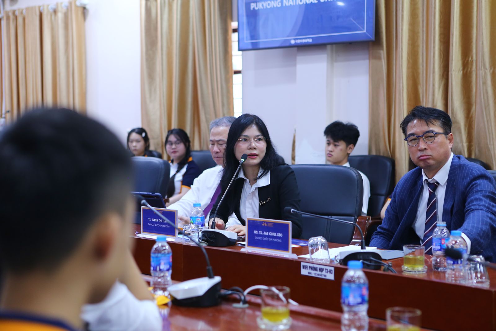 Trong phần thảo luận, nhiều sinh viên đặt câu hỏi liên quan đến học bổng, điều kiện nhập học, cơ hội nghiên cứu và phát triển nghề nghiệp tại Hàn Quốc. Các chuyên gia và lãnh đạo PKNU đã trực tiếp giải đáp, giúp sinh viên có thêm căn cứ thực tế để định hướng kế hoạch học tập và sự nghiệp.