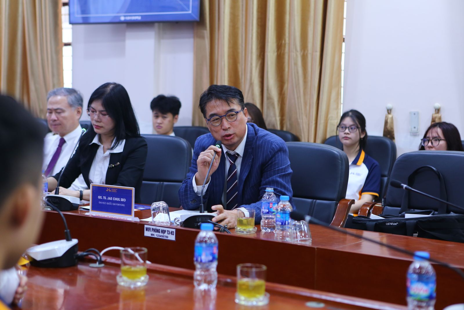 Buổi tọa đàm có sự tham dự của GS.TS. Sang Hoon Bae - Hiệu trưởng; GS. Teakun Ahn; GS. Jae Chul Seo; TS. Trịnh Thanh Hạnh - phụ trách hợp tác quốc tế, đào tạo; về phía UTT có PGS.TS. Trần Văn Quân - Phó Viện trưởng Viện Đào tạo & Hợp tác quốc tế, cùng đại diện các đơn vị, giảng viên và đông đảo sinh viên quan tâm đến chương trình.