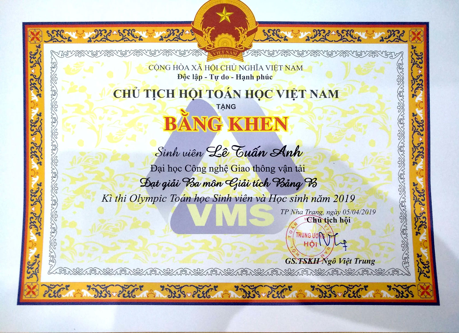 - Bạn Lê Tuấn Anh lớp 69DCDT21 đạt giải Ba môn Giải tích