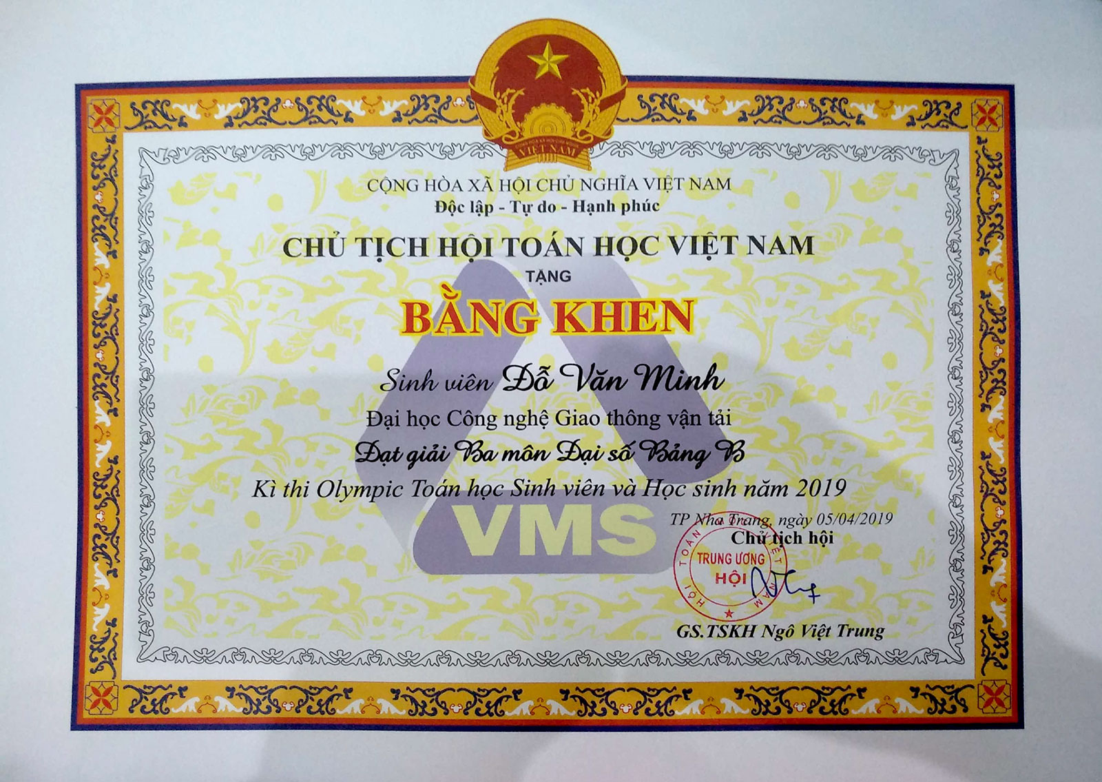 - Bạn Đỗ Văn Minh lớp 69DCCD11 đạt giải Ba môn Đại số