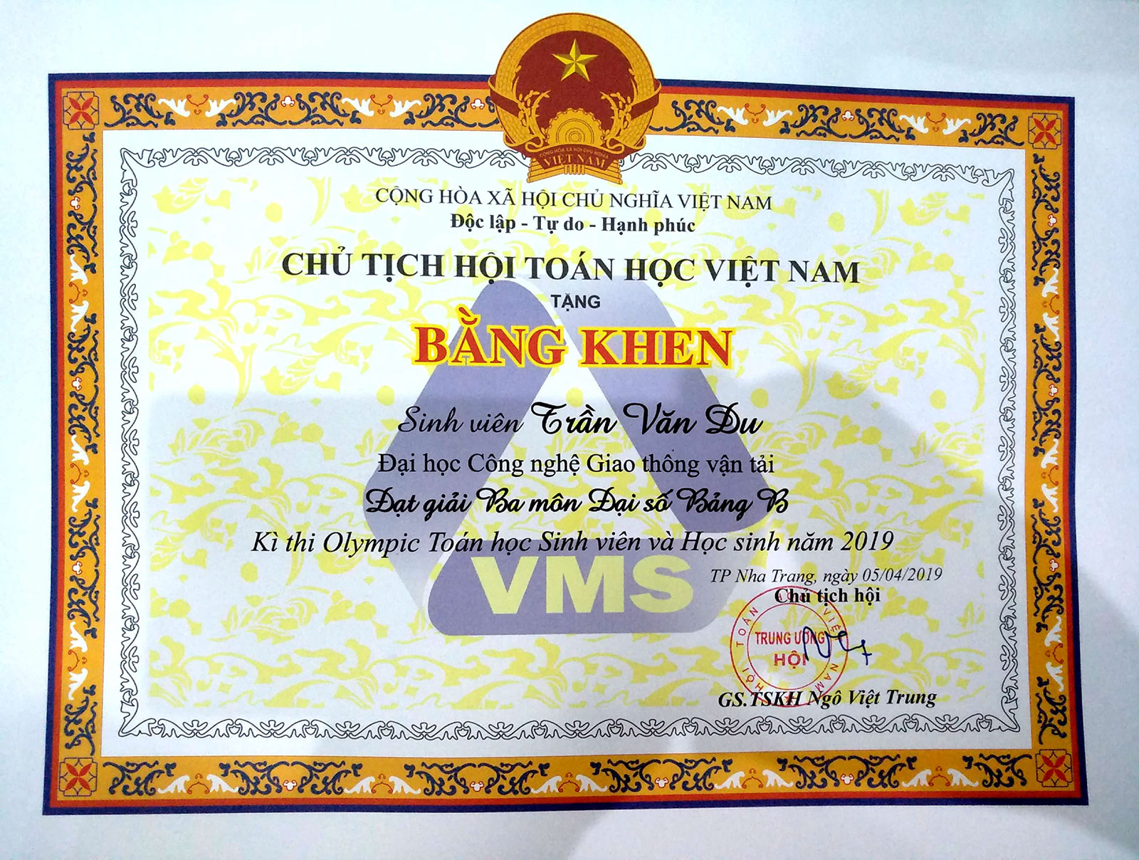 Kết quả kỳ thi, Ban Tổ chức đã trao 6 giải đặc biệt, 68 giải nhất, 114 giải nhì, 159 giải ba và 58 giải khuyến khích cho các thí sinh tham dự kỳ thi Olympic Toán học sinh viên - học sinh toàn quốc lần thứ 27. Đội tuyển Olympic Toán học Trường Đại học Công nghệ GTVT do ThS. Hoàng Thị Cẩm Thạch - Trưởng Bộ môn Toán làm trưởng đoàn đưa 06 sinh viên tham dự Kỳ thi Olympic Toán học sinh viên và học sinh toàn quốc lần thứ 27 năm 2019, đạt 03 giải Ba, cụ thể: