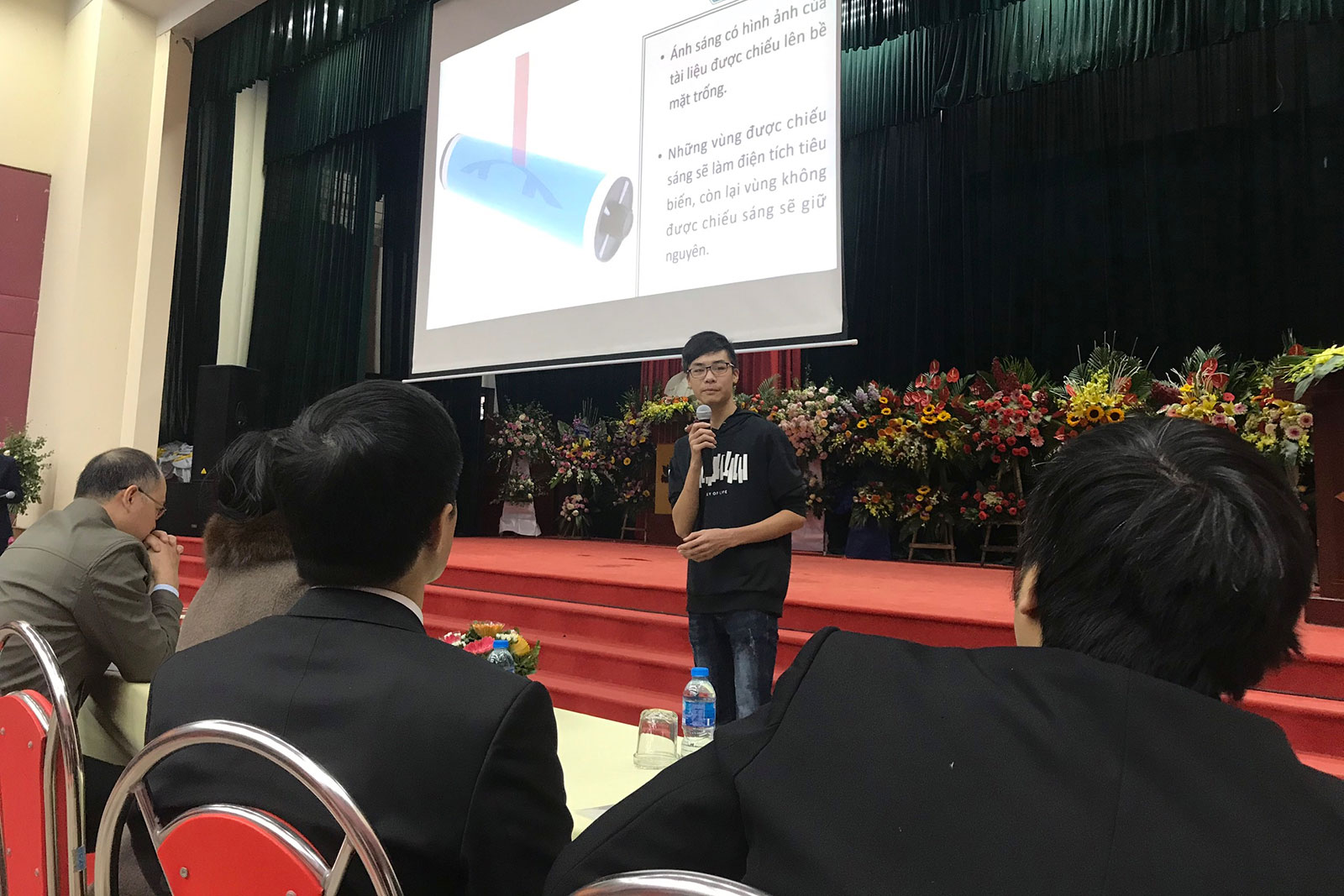 Sinh viên lớp 70DCTT23 thuyết trình về ứng dụng của hiện tượng tĩnh điện trong máy Photocopy