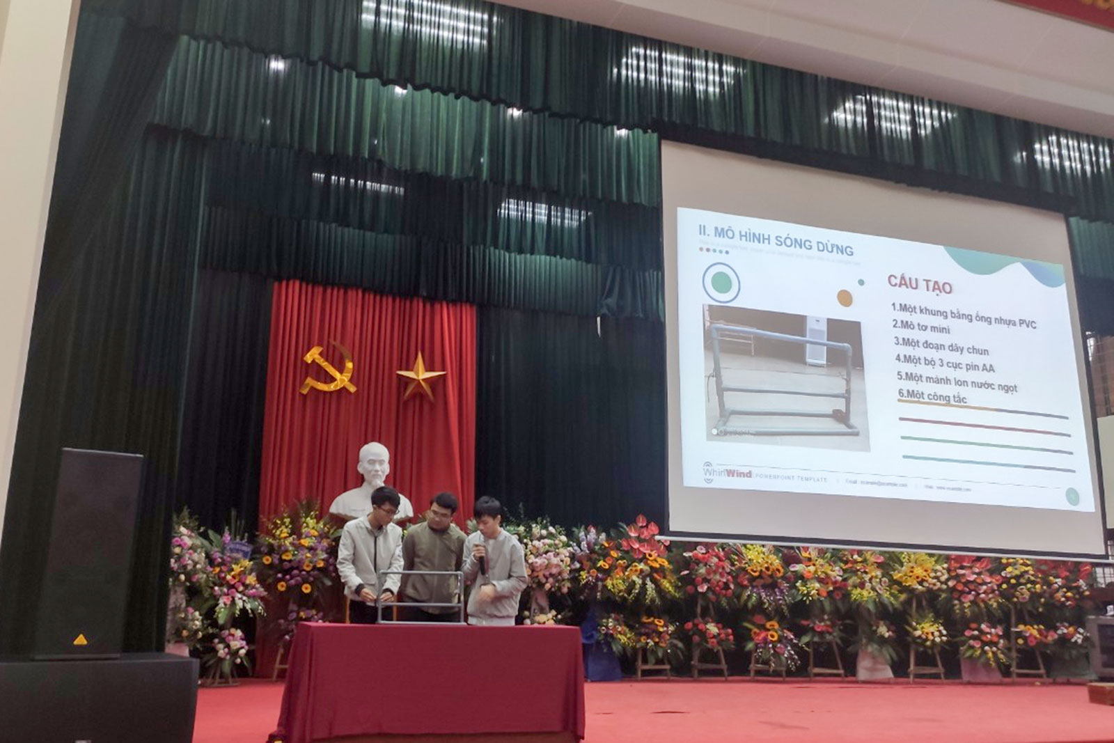 Sinh viên của nhóm lớp 70DCTT25 trình bày sản phẩm mô tả hiện tượng sóng dừng