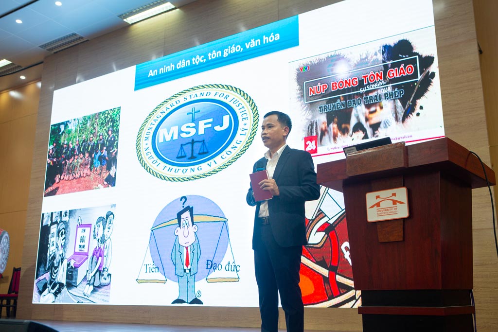 Các diễn giả cũng nhấn mạnh một số yếu tố của an ninh phi truyền thống đang ảnh hưởng sâu sắc đến đời sống và học tập của sinh viên ngày nay trong vấn đề an ninh năng lượng, an ninh dân tộc, tôn giáo, văn hóa, đặc biệt là các mối đe dọa từ không gian mạng, khi các thế lực thù địch lợi dụng công nghệ thông tin làm công cụ lan truyền các tư tưởng sai lệch.