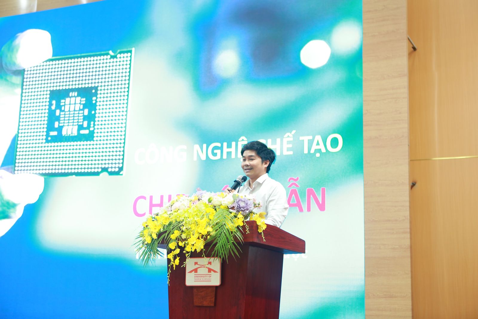 Tại buổi Talkshow, các diễn giả khách mời đã có những bài thuyết trình đi sát với thực tế, giới thiệu tổng quan về quy mô ngành bán dẫn, cơ hội việc làm, những thách thức và thuận lợi trong tương lai cho các bạn sinh viên.