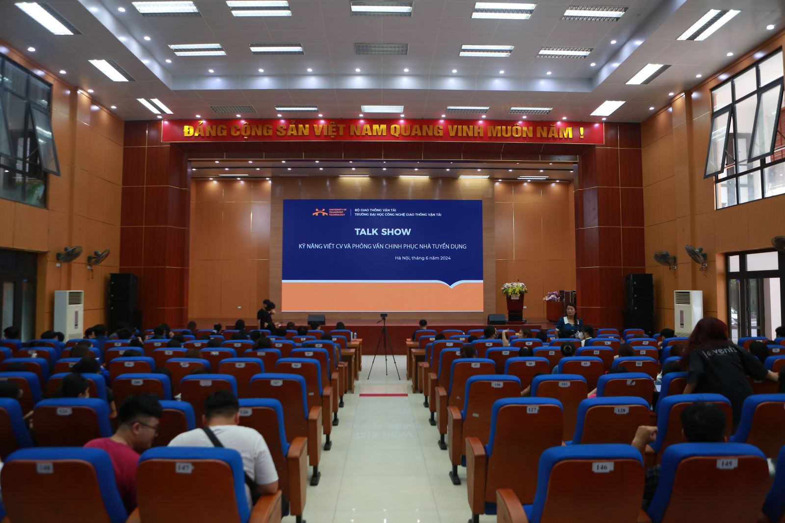 Sáng ngày 11/6, Trường Đại học Công nghệ GTVT tổ chức Talkshow “Kỹ năng viết CV và phỏng vấn chinh phục nhà tuyển dụng” nhằm giúp sinh viên trau dồi kiến thức, rèn luyện kỹ năng, tìm hiểu thị trường lao động; đồng thời tạo cơ hội trải nghiệm thực tế kỹ năng viết CV và thực hiện phỏng vấn.