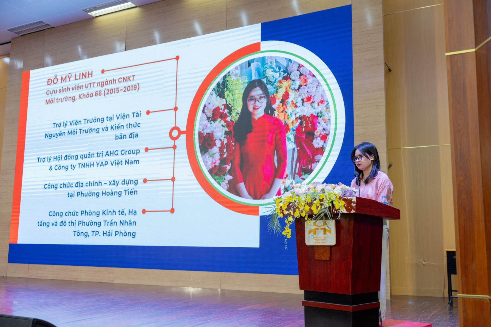Bà Đỗ Mỹ Linh – Cán bộ công chức Phòng Kinh tế, Hạ tầng và Đô thị, UBND phường Trần Nhân Tông, TP. Hải Phòng là một khách mời đặc biệt - cựu sinh viên K66, khóa đầu tiên của ngành Công nghệ Kỹ thuật Môi trường. Với phần chia sẻ "Từ giảng đường đến cơ quan quản lý: Hành trình của một sinh viên môi trường trở thành cán bộ quản lý nhà nước", bà Linh đã truyền cảm hứng và kinh nghiệm quý báu về quá trình chuyển đổi sang công tác tại cơ quan công quyền, đồng thời nhấn mạnh vai trò của kiến thức chuyên ngành trong lĩnh vực quản lý nhà nước hiện nay.