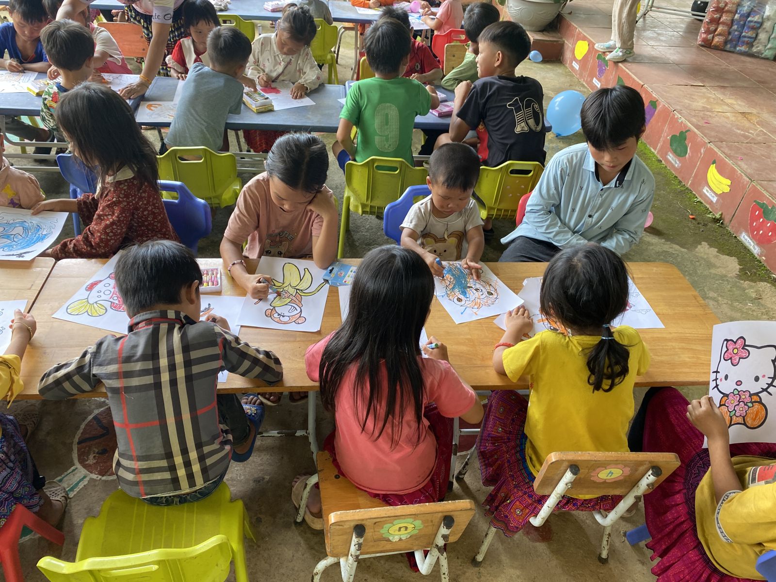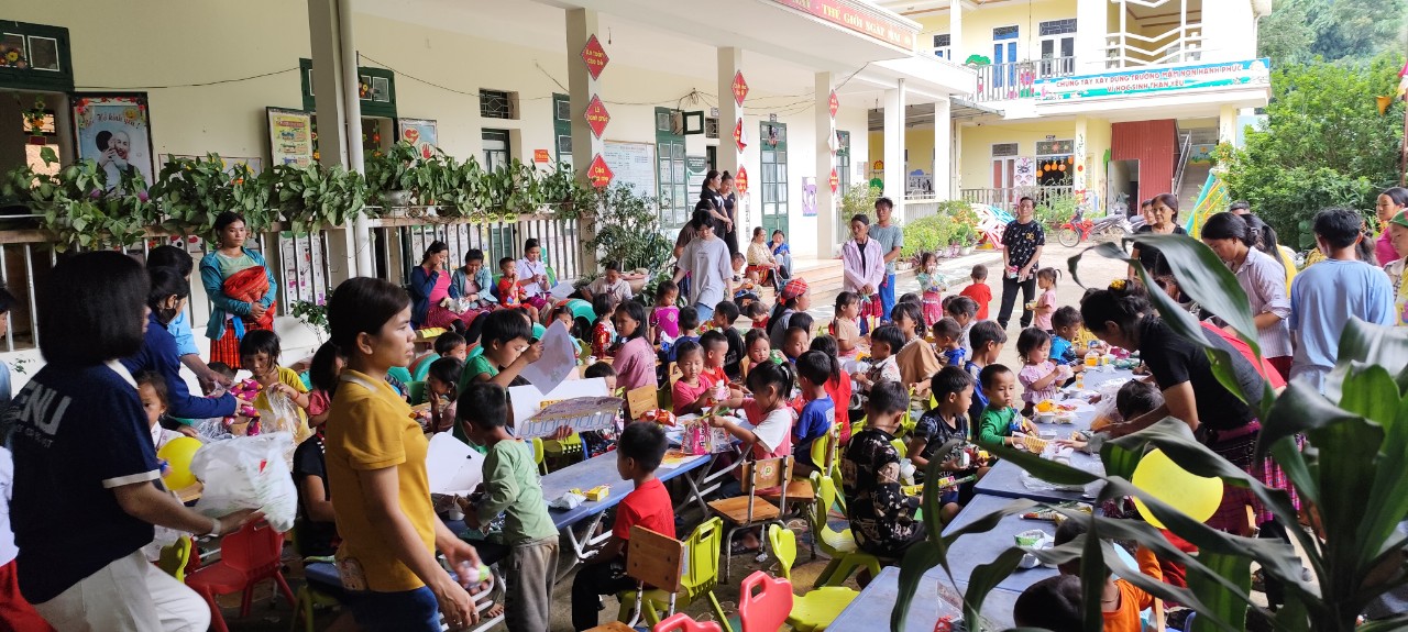 Sinh viên UTT bên các cháu thiếu nhi tại Xã Xà Hồ, huyện Trạm Tấu, tỉnh Yên Bái