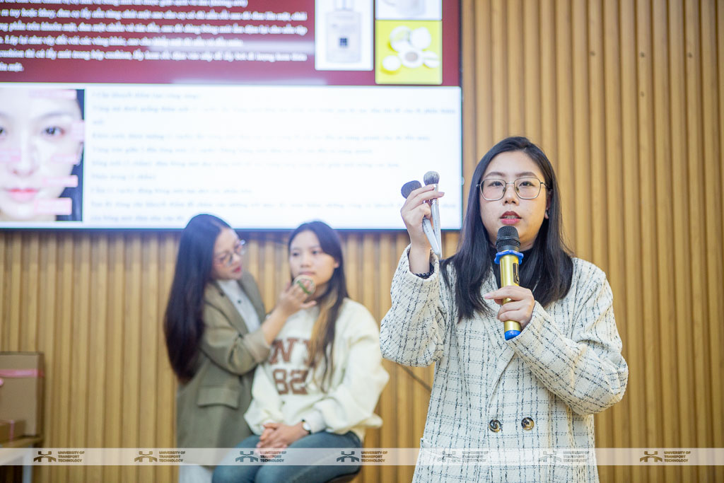 Workshop có sự góp mặt của chuyên gia trang điểm Phạm Minh Trang - cựu sinh viên K66 ngành tài chính ngân hàng, Khoa Kinh tế vận tải cùng đông đảo các nữ sinh UTT đang học tại cơ sở đào tạo Hà Nội. Với không khí sôi động và gần gũi, chương trình đã mang đến những kiến thức bổ ích về trang điểm, giúp các bạn có thêm kỹ năng làm đẹp phù hợp với bản thân.