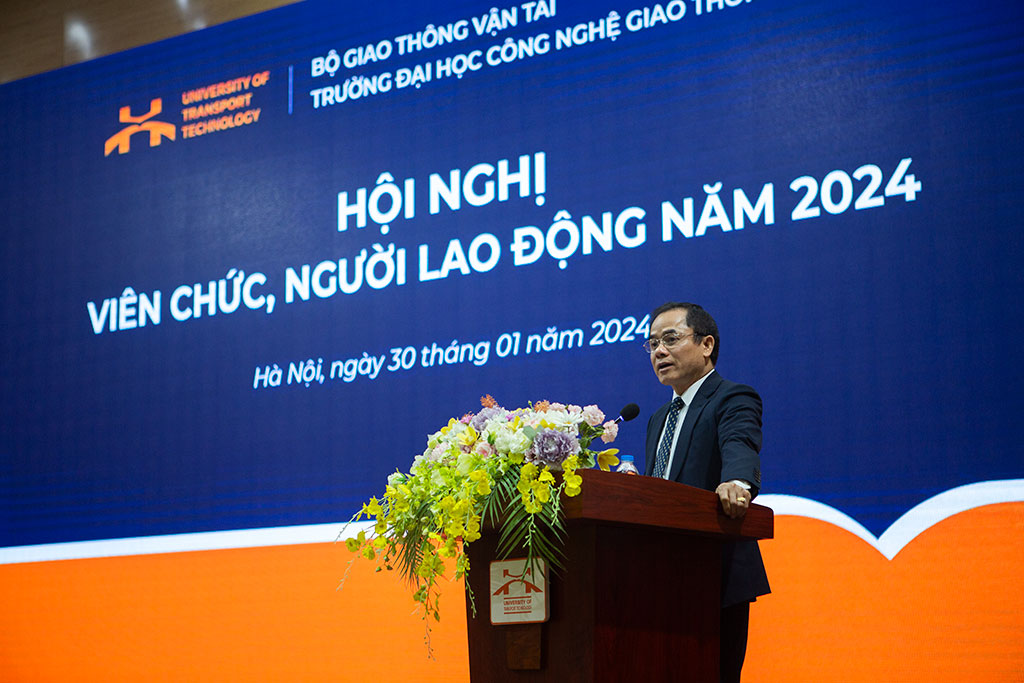 Ngày 30/01, Trường Đại học Công nghệ GTVT long trọng tổ chức Hội nghị viên chức - người lao động năm 2024. Hội nghị có ý nghĩa quan trọng, nhằm đánh giá những kết quả Nhà trường đạt được trong năm 2023, đồng thời xây dựng phương hướng, kế hoạch năm học mới 2024.