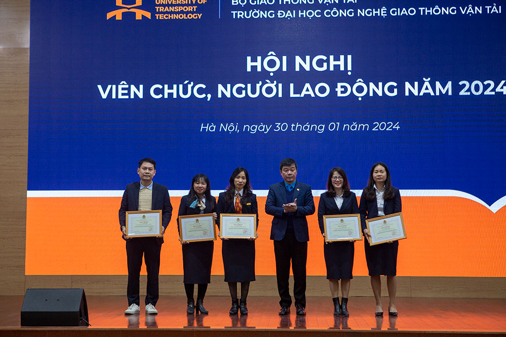 Tại Hội nghị, đồng chí Lưu Thị Thu Hà - Phó Chủ tịch Công đoàn Trường đã công bố quyết định và trao Bằng khen của Công đoàn GTVT Việt Nam cho 05 cá nhân có thành tích xuất sắc trong năm vừa qua.