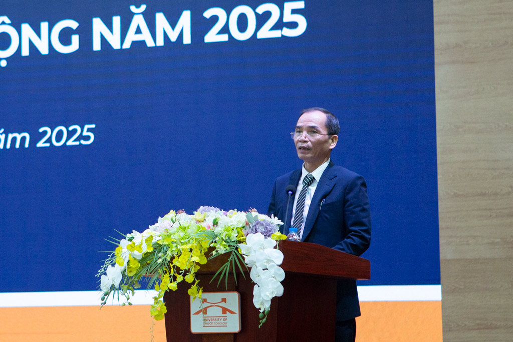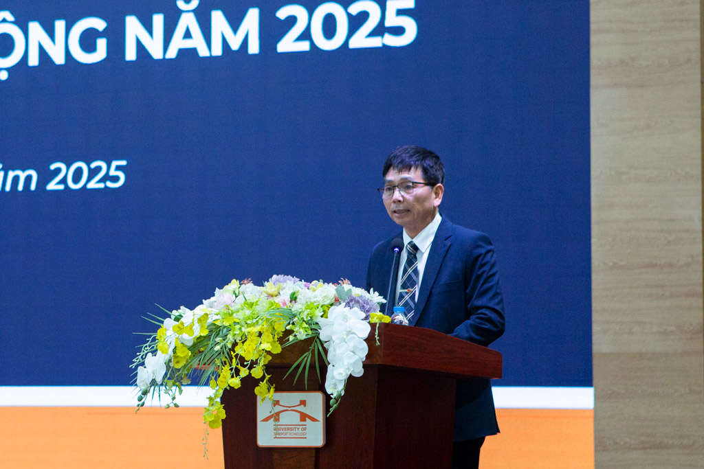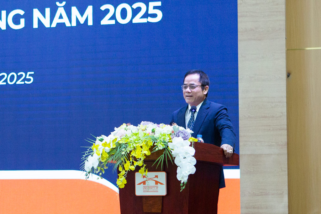 Tại Hội nghị, PGS.TS. Nguyễn Hoàng Long, Hiệu trưởng Nhà trường Báo cáo kết quả thực hiện nhiệm vụ công tác năm 2024, nhiệm vụ trọng tâm năm 2025 của Nhà trường. Trong năm 2024, mặc dù còn gặp nhiều khó khăn, nhưng tập thể sư phạm Nhà trường đã đồng thuận, cùng nhau nỗ lực khắc phục mọi khó khăn để hoàn thành các nhiệm vụ và đạt nhiều thành tích nổi bật trên các lĩnh vực chuyển đổi số; công tác quản lý, tổ chức cán bộ; công tác đào tạo; hoạt động khoa học công nghệ, đổi mới sáng tạo và hợp tác quốc tế; người học; cơ sở vật chất; đội ngũ VC-NLĐ; tài chính; công tác đoàn thể, phục vụ cộng đồng.