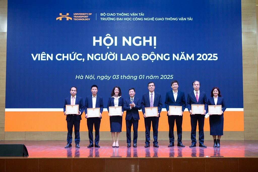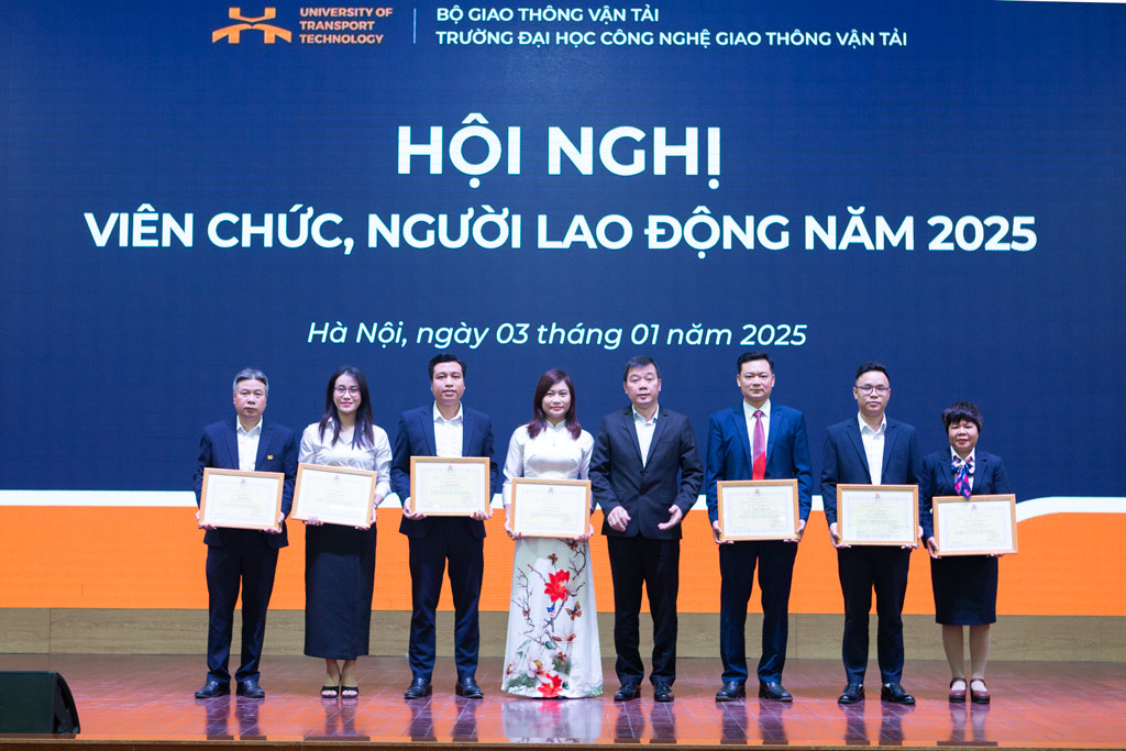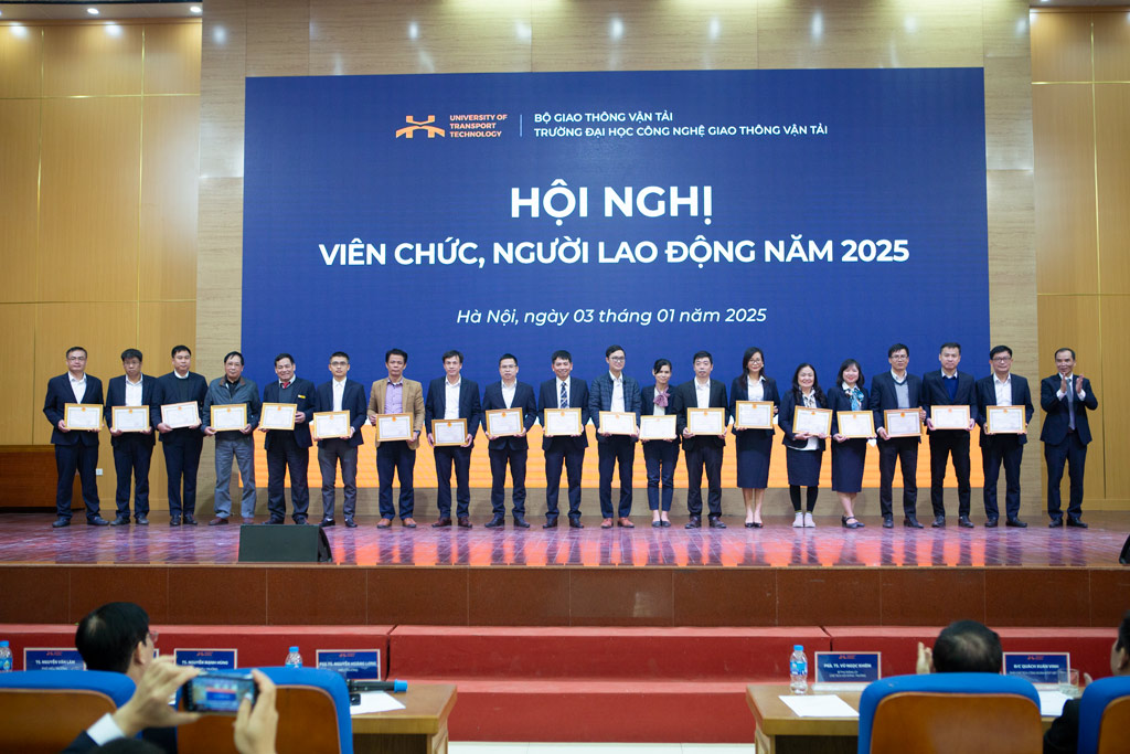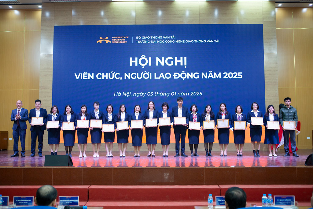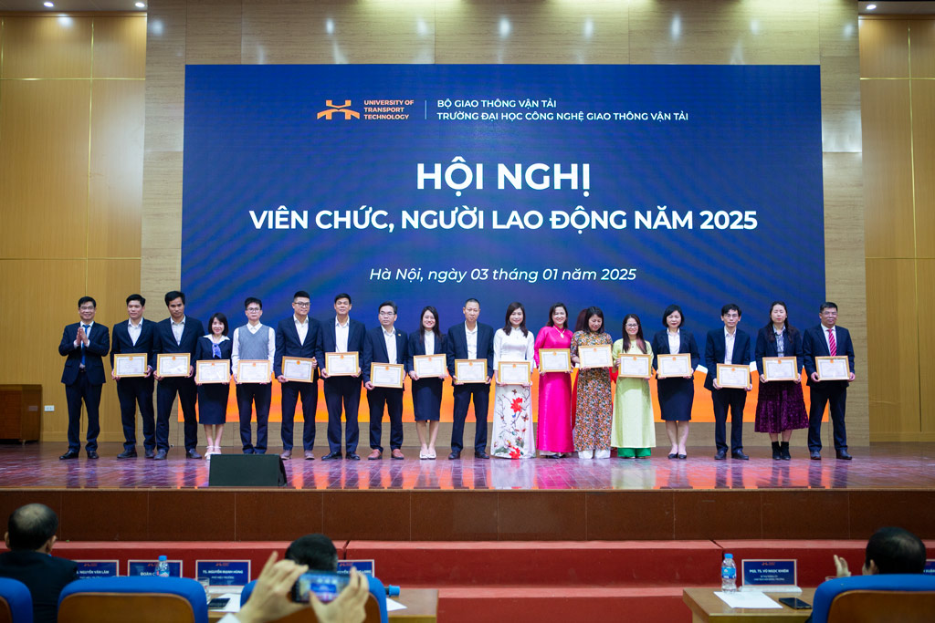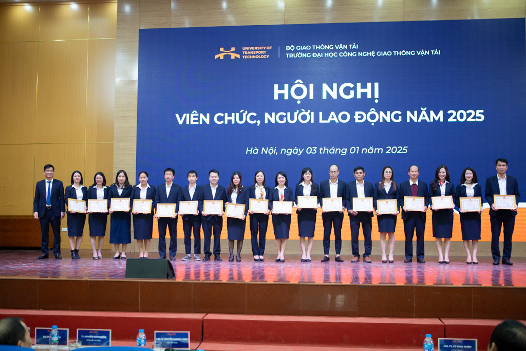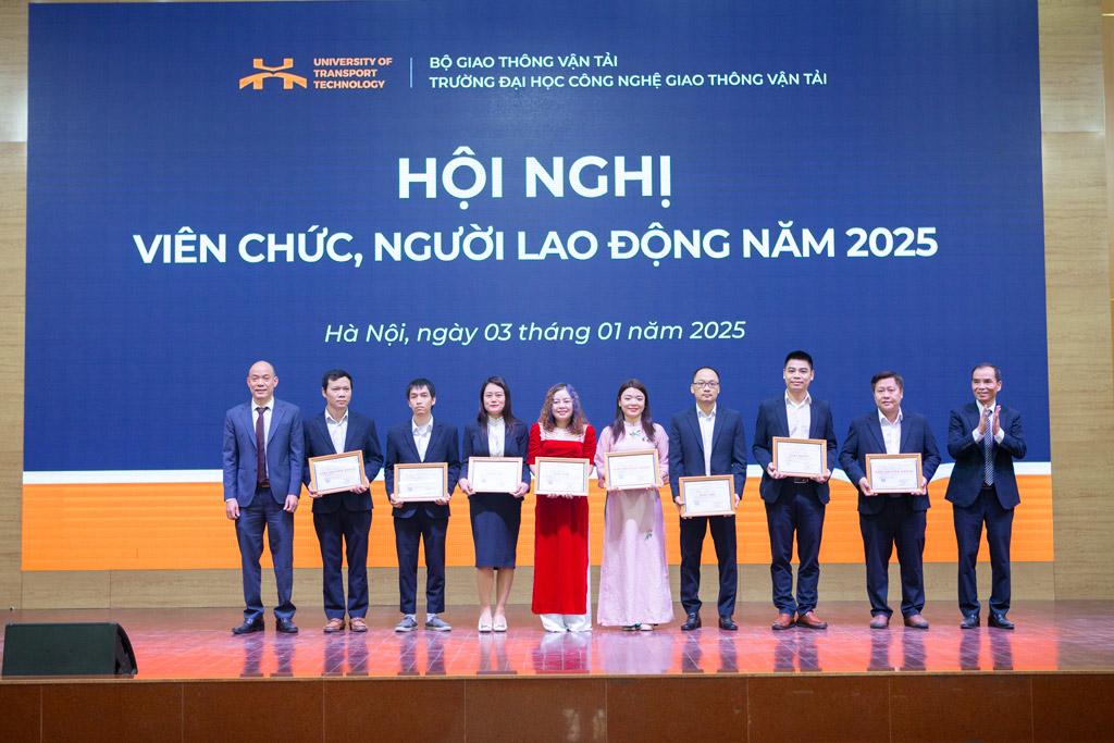 Hội nghị đã công bố các quyết định khen thưởng, theo đó Bộ GTVT đã trao tặng Danh hiệu tập thể lao động xuất sắc cấp Bộ cho Trường Đại học Công nghệ GTVT; trao Bằng khen Bộ GTVT cho 01 tập thể và các cá nhân hoàn thành xuất sắc nhiệm vụ trong năm qua; trao Bằng khen của Công đoàn GTVT Việt Nam cho các tập thể và cá nhân có thành tích xuất sắc tiêu biểu trong phong trào thi đua lao động giỏi và xây dựng tổ chức công đoàn vững mạnh; tặng Giấy khen của Hiệu trưởng cho 14 tập thể lao động xuất sắc và 77 cá nhân; trao giải thưởng ý tưởng, sáng kiến nâng cao chất lượng hiệu quả công tác năm 2024 cho các tập thể và cá nhân xuất sắc.