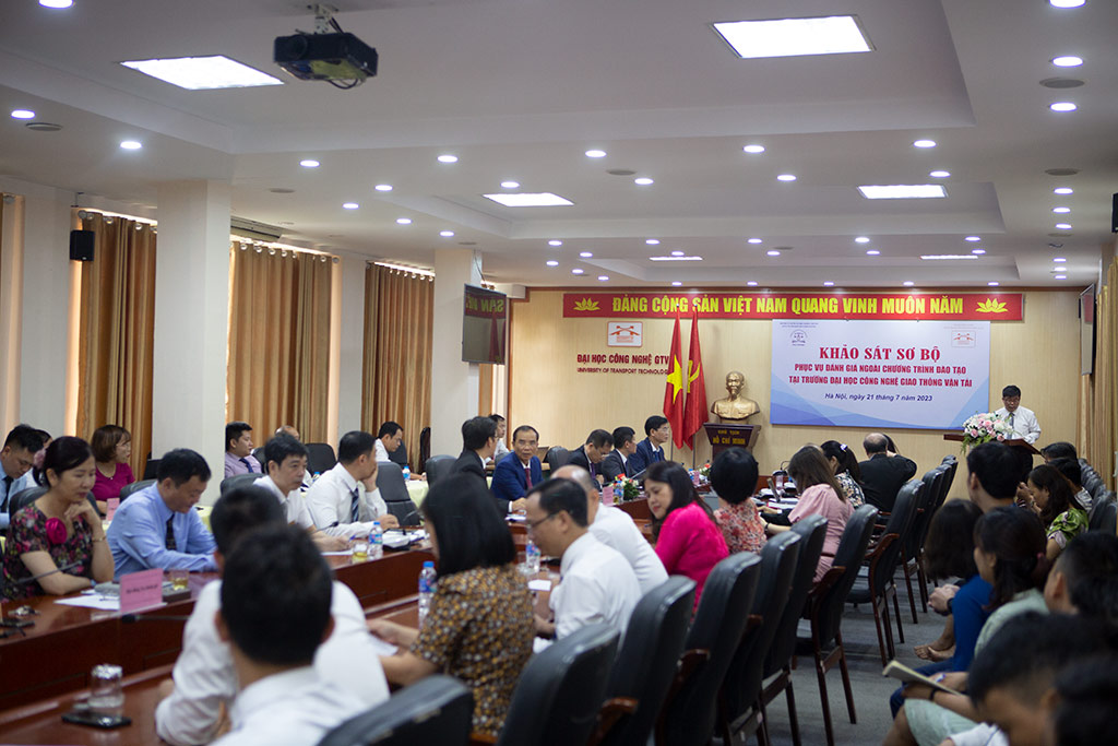 Ngày 21/7, Đoàn chuyên gia đánh giá ngoài (ĐGN) của Trung tâm Kiểm định chất lượng giáo dục – Hiệp hội Các trường ĐH-CĐ Việt Nam (KĐCLGD – HHCTĐHCĐVN) đã tiến hành khảo sát sơ bộ phục vụ đánh giá ngoài chương trình đào tạo tại Trường Đại học Công nghệ GTVT để chuẩn bị cho đợt khảo sát chính thức theo quy trình kiểm định chất lượng giáo dục trường đại học của Bộ Giáo dục và Đào tạo.