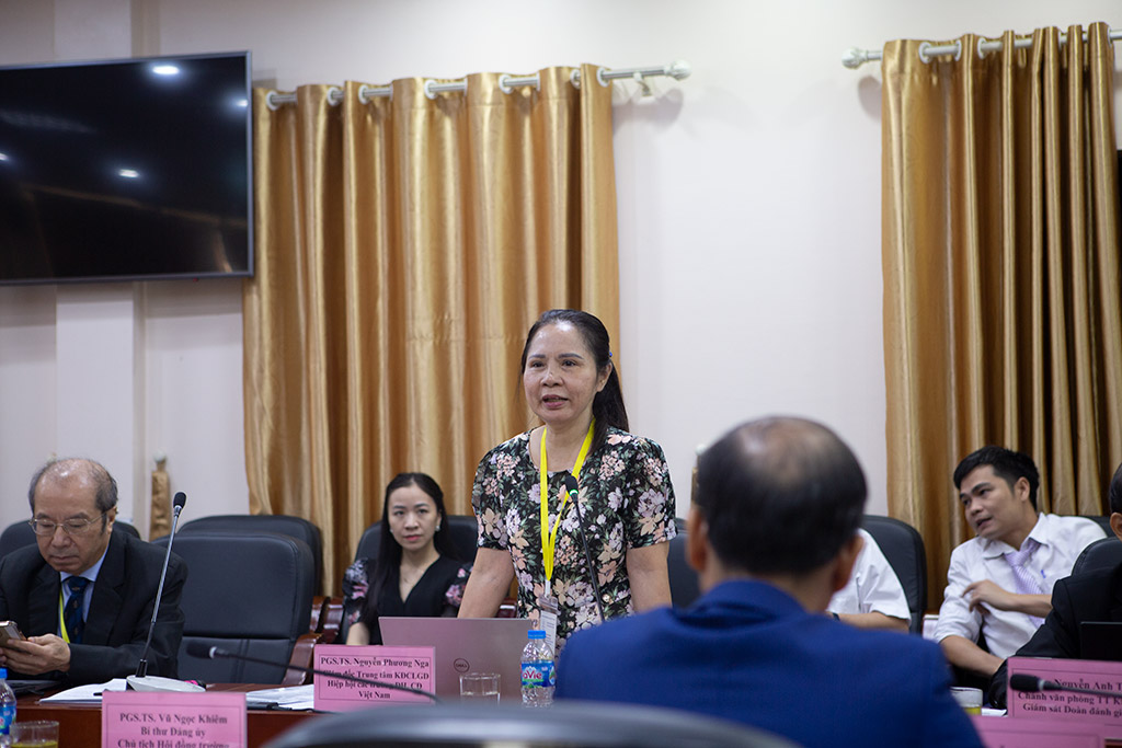 PGS.TS. Nguyễn Phương Nga - Giám đốc Trung tâm KĐCLGD - HHCTĐHCĐVN phát biểu tại buổi khảo sát