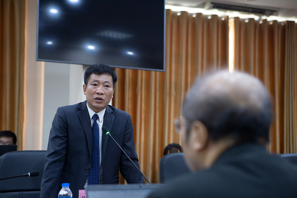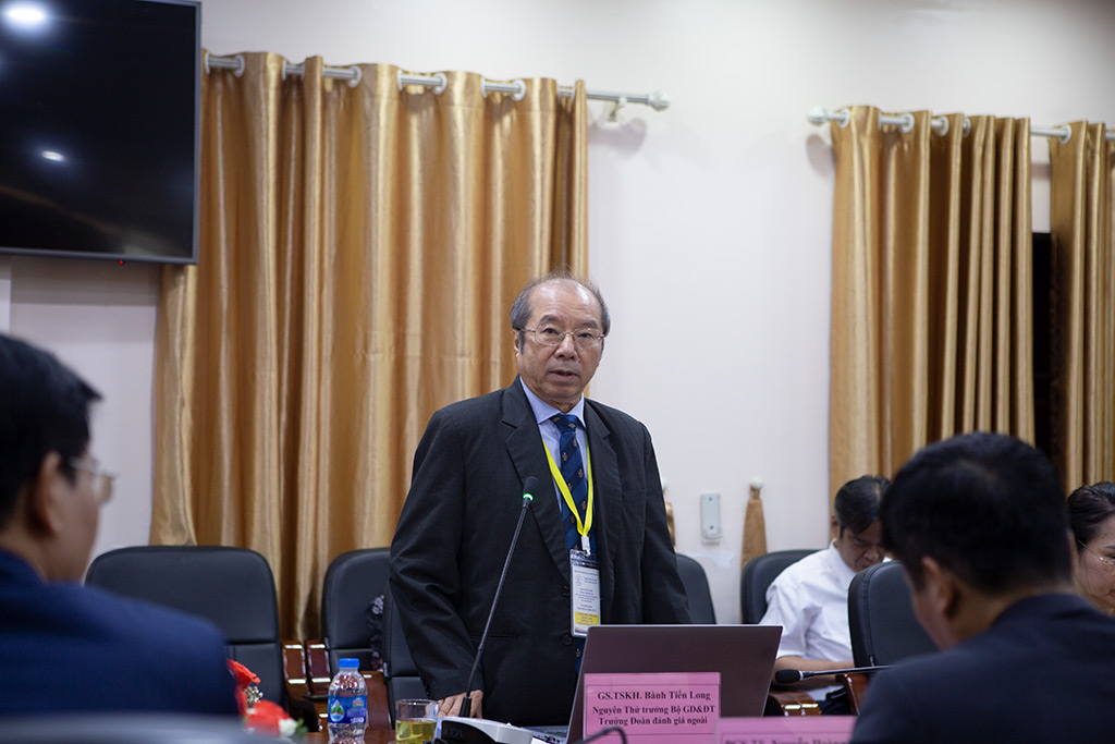 GS.TSKH. Bành Tiến Long - Nguyên Thứ trưởng thường trực Bộ GD&ĐT, Trưởng đoàn ĐGN báo cáo về kết quả nghiên cứu hồ sơ tự đánh giá 04 CTĐT