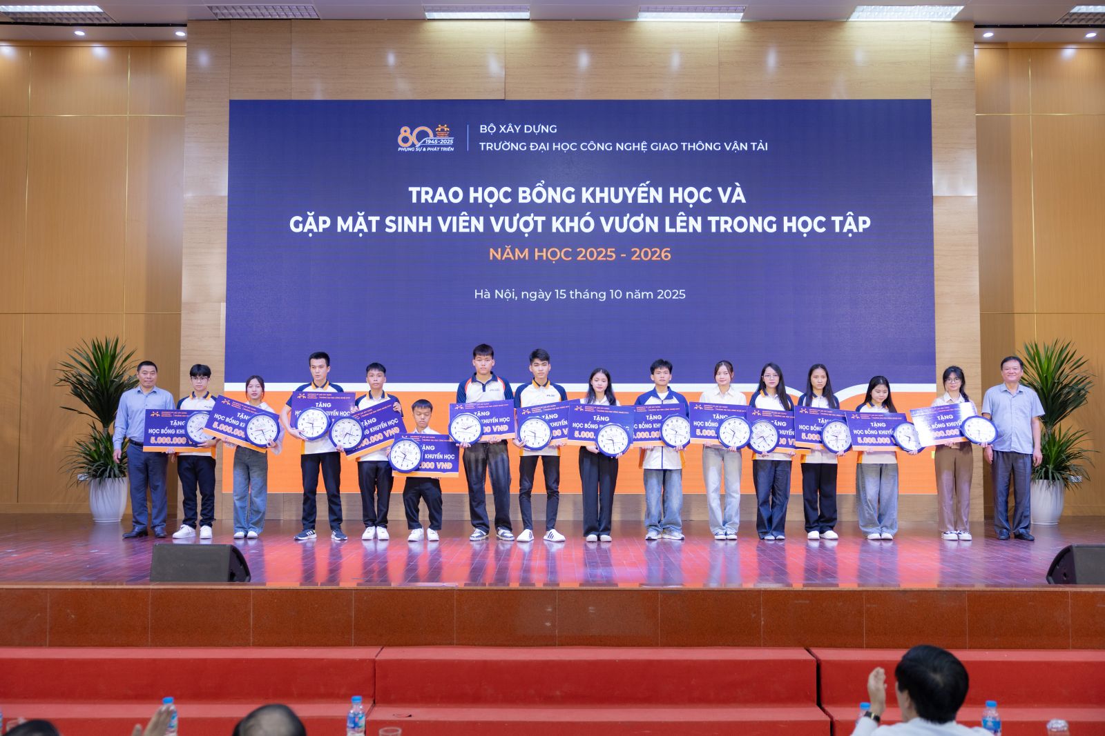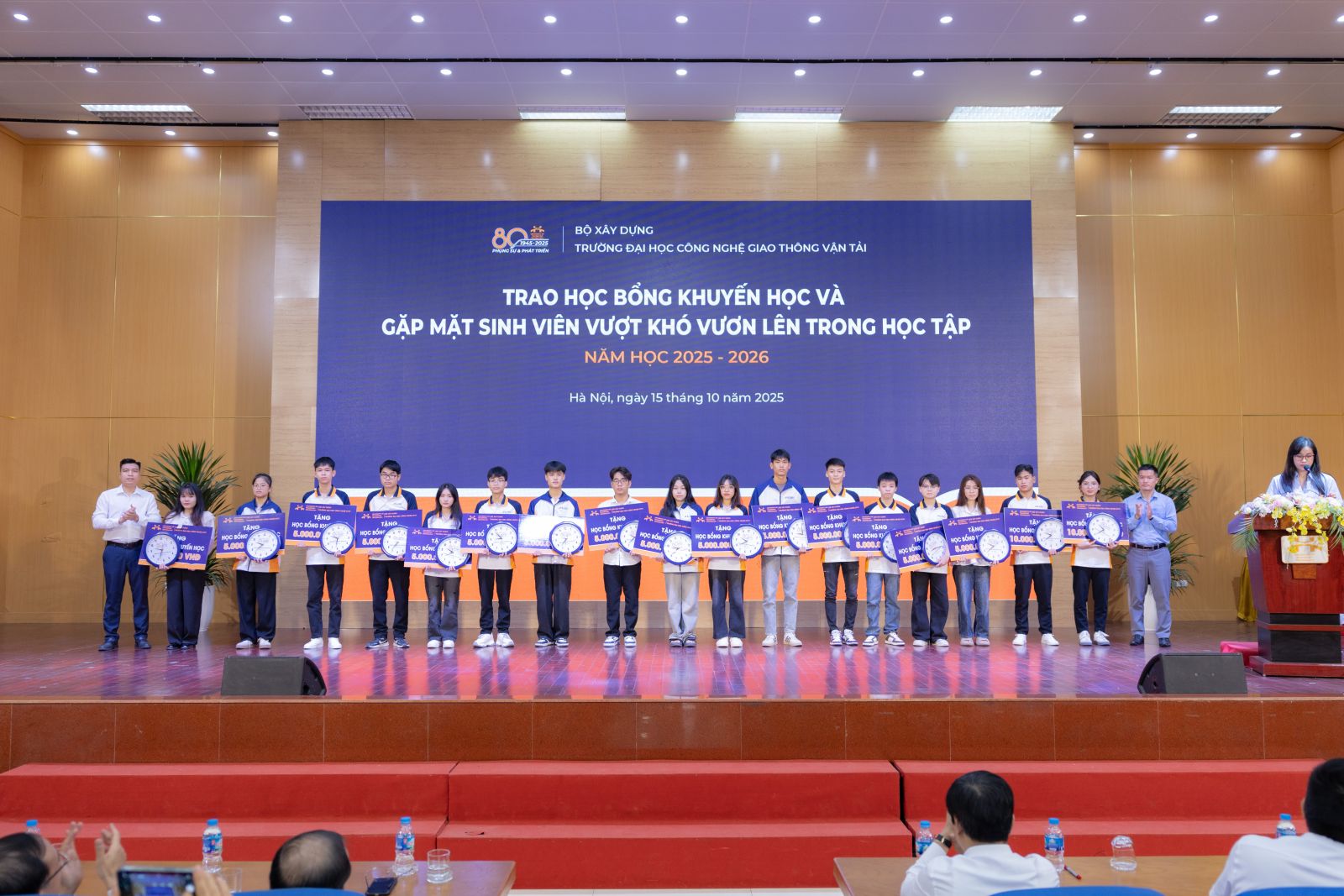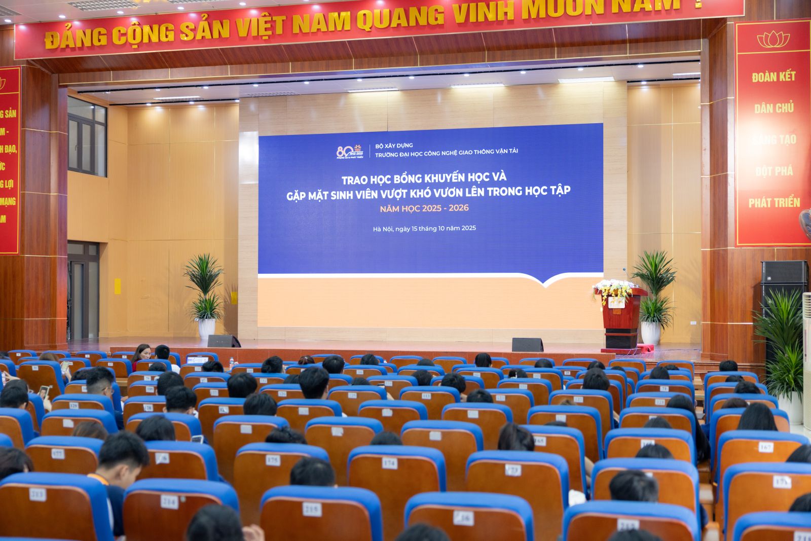 Trong định hướng phát triển, Trường Đại học Công nghệ GTVT (UTT) luôn coi Văn hóa UTT là “chìa khóa” hiện thực hóa mục tiêu chiến lược, được lan tỏa mạnh mẽ trong toàn trường từ đội ngũ cán bộ, VC-NLĐ đến người học. Chương trình trao học bổng khuyến học và gặp mặt sinh viên vượt khó ngày 15/10/2025 là hoạt động tiêu biểu, nơi Văn hóa UTT "Trí Tuệ - Tự Tin - Tình Thương - Trách nhiệm Tương lai" được lan tỏa sâu rộng; tinh thần nhân văn, sáng tạo và trách nhiệm giáo dục được thể hiện rõ; mọi thành viên cùng hướng tới các giá trị cốt lõi: Ươm mầm tài năng - Tôn trọng giá trị - Thân thiện sẻ chia.
