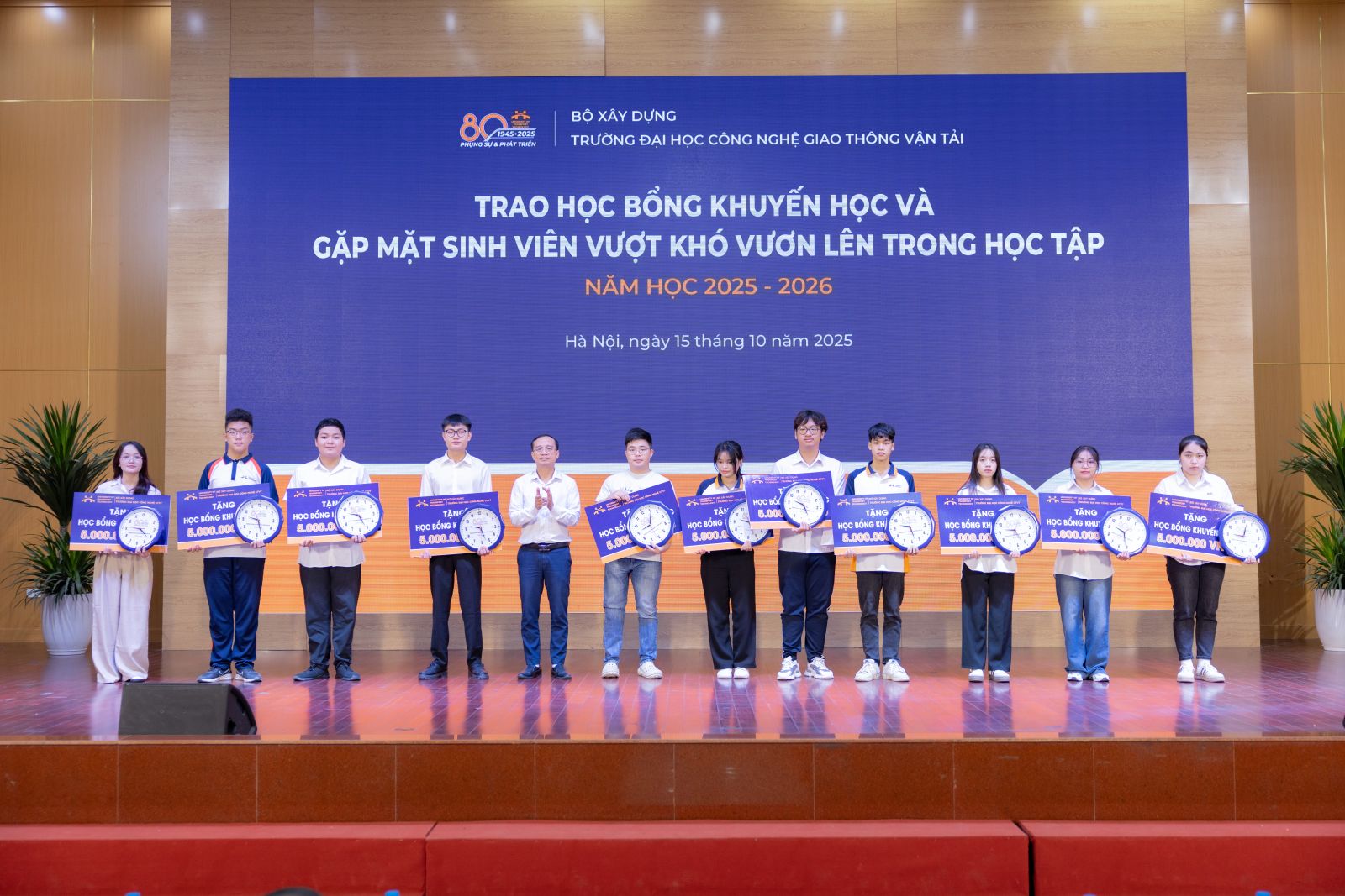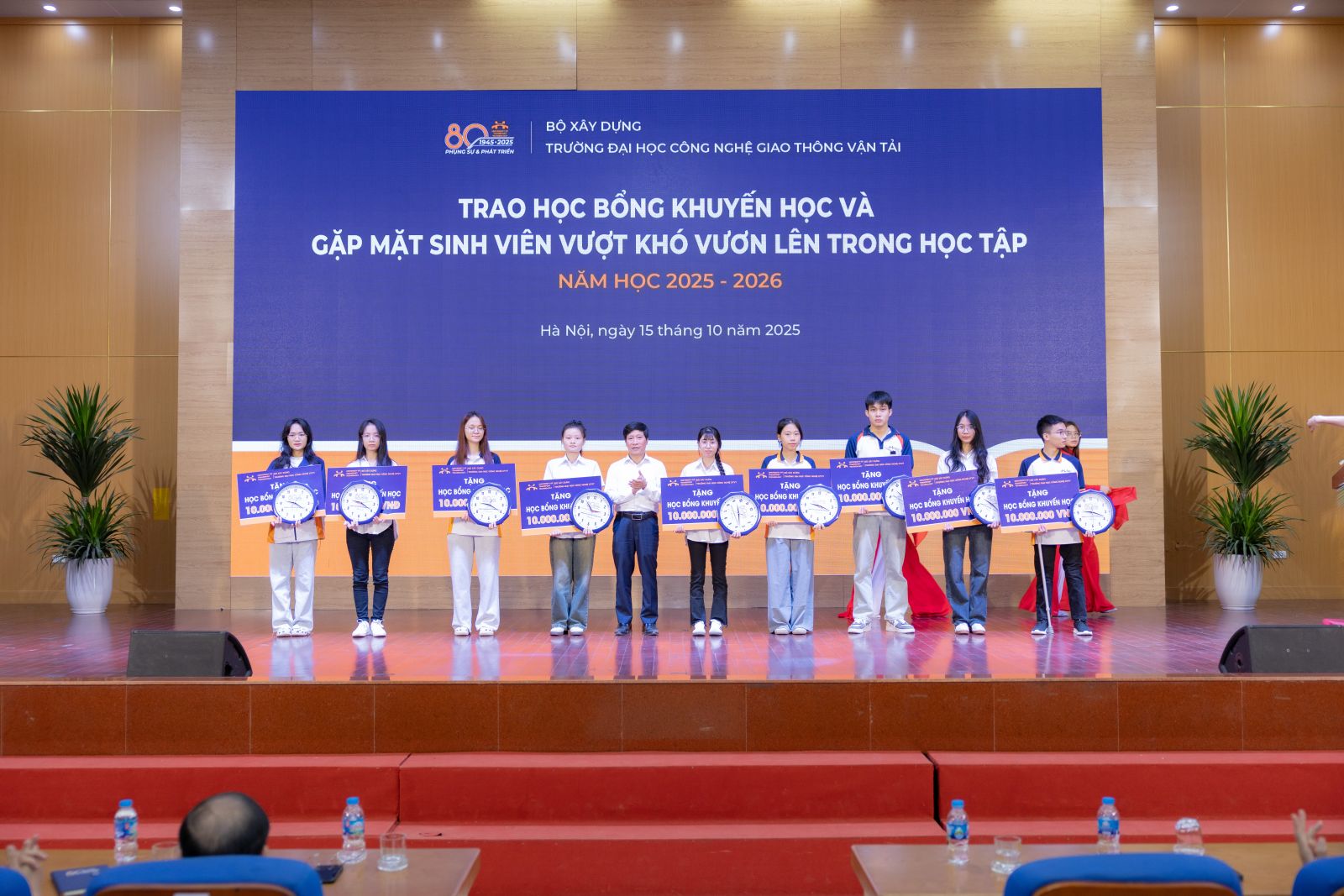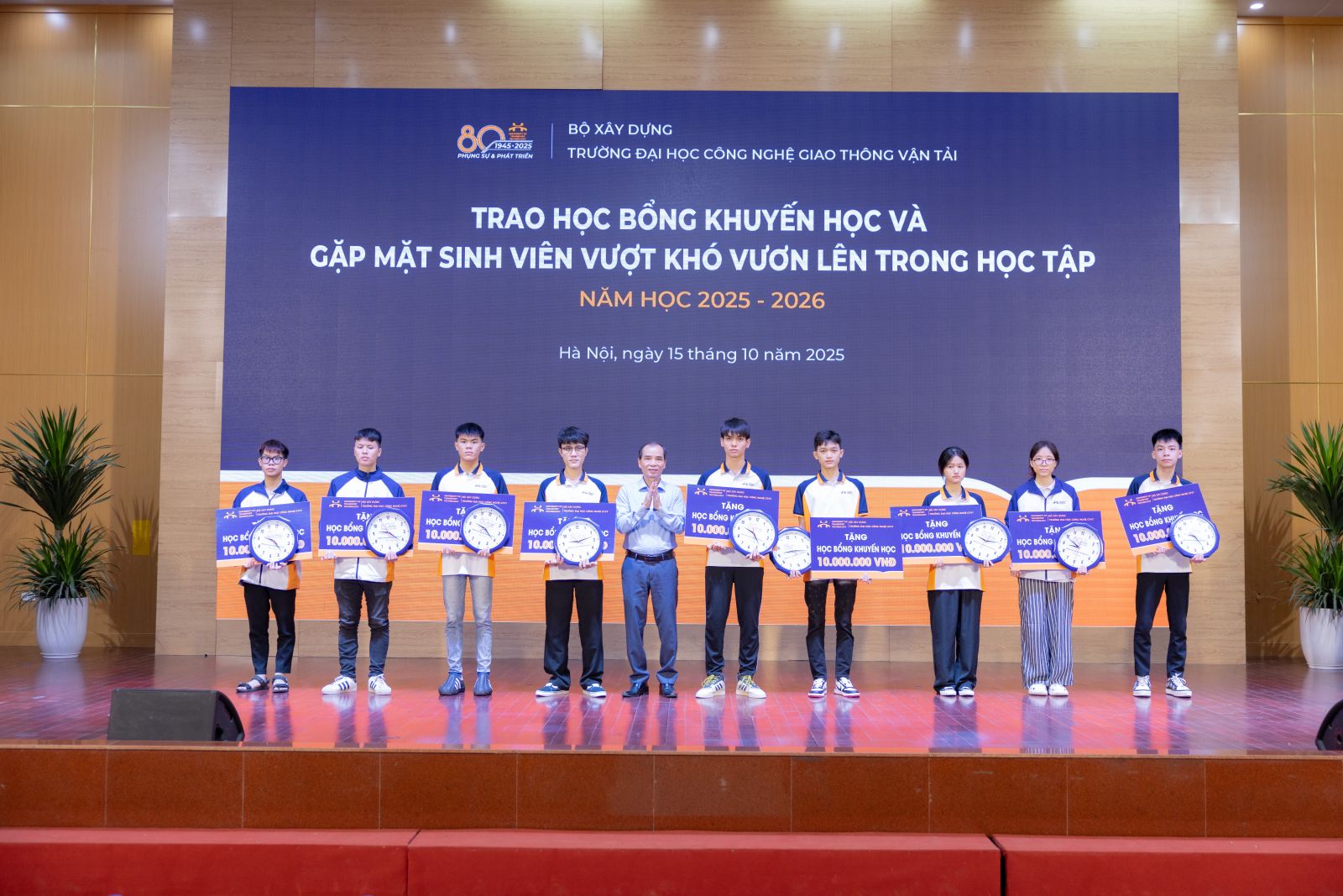 Trong định hướng phát triển, Trường Đại học Công nghệ GTVT (UTT) luôn coi Văn hóa UTT là “chìa khóa” hiện thực hóa mục tiêu chiến lược, được lan tỏa mạnh mẽ trong toàn trường từ đội ngũ cán bộ, VC-NLĐ đến người học. Chương trình trao học bổng khuyến học và gặp mặt sinh viên vượt khó ngày 15/10/2025 là hoạt động tiêu biểu, nơi Văn hóa UTT "Trí Tuệ - Tự Tin - Tình Thương - Trách nhiệm Tương lai" được lan tỏa sâu rộng; tinh thần nhân văn, sáng tạo và trách nhiệm giáo dục được thể hiện rõ; mọi thành viên cùng hướng tới các giá trị cốt lõi: Ươm mầm tài năng - Tôn trọng giá trị - Thân thiện sẻ chia.
