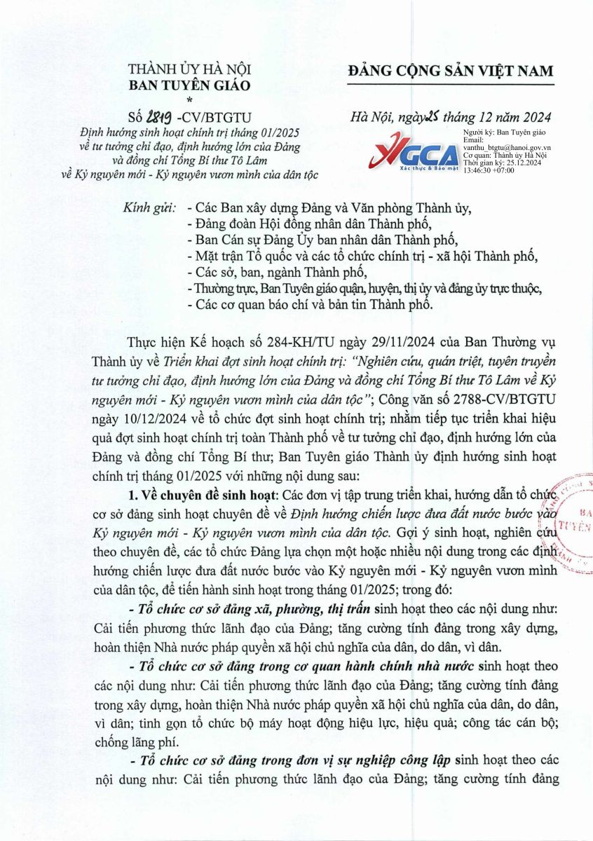 Định hướng sinh hoạt chính trị tháng 01/2025 về tư tưởng chỉ đạo, đính hướng lớn của Đảng và đồng chí Tổng bí thư Tô Lâm về kỷ nguyên mới - kỷ nguyên vươn mình của dân tộc 26/12/2024 08:12 File đính kèm CV_2819--25_12_2024-_signed.pdf