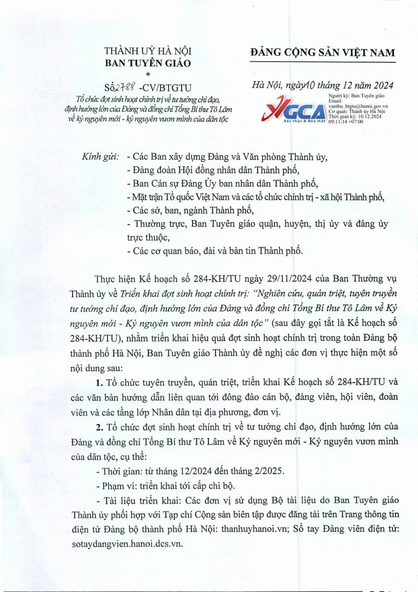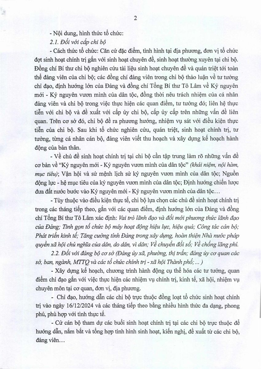 Tổ chức đợt sinh hoạt chính trị về tư tưởng chỉ đạo, đính hướng lớn của Đảng và đồng chí Tổng bí thư Tô Lâm về kỷ nguyên mới - kỷ nguyên vươn mình của dân tộc 10/12/2024 08:12