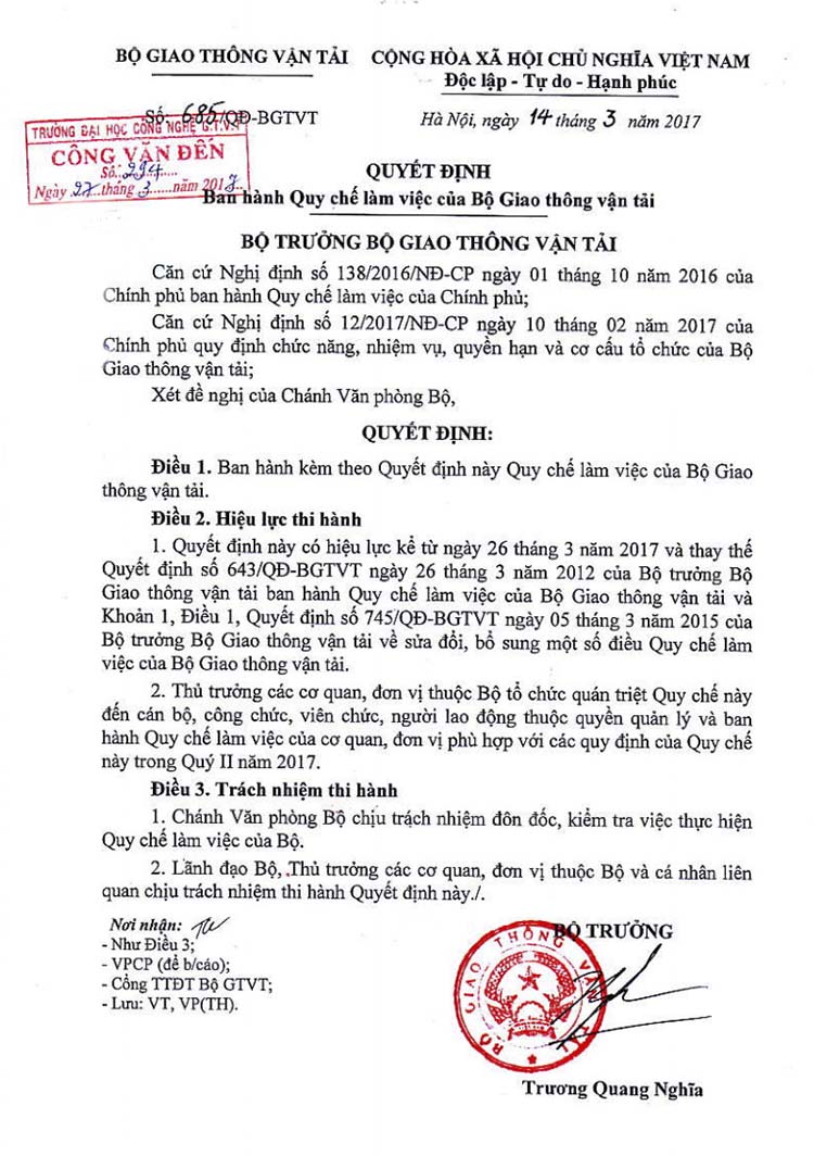 Ban hành Quy chế làm việc của Bộ Giao thông vận tải