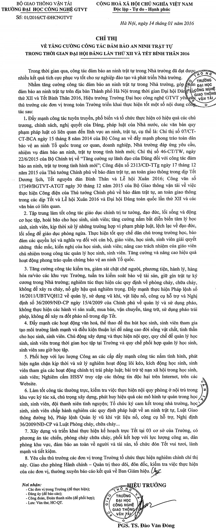 Chỉ thị về tăng cường công tác đảm bảo an ninh trật tự trong thời gian Đại hội Đảng lần thứ XII và Tết Bính Thân 2016 22/01/2016 00:01 File đính kèm chi-thi-tang-cuong-cong-tac-dam-bao-an-ninh-trat-tu-dai-hoi-xii-binh-than-2016.pdf