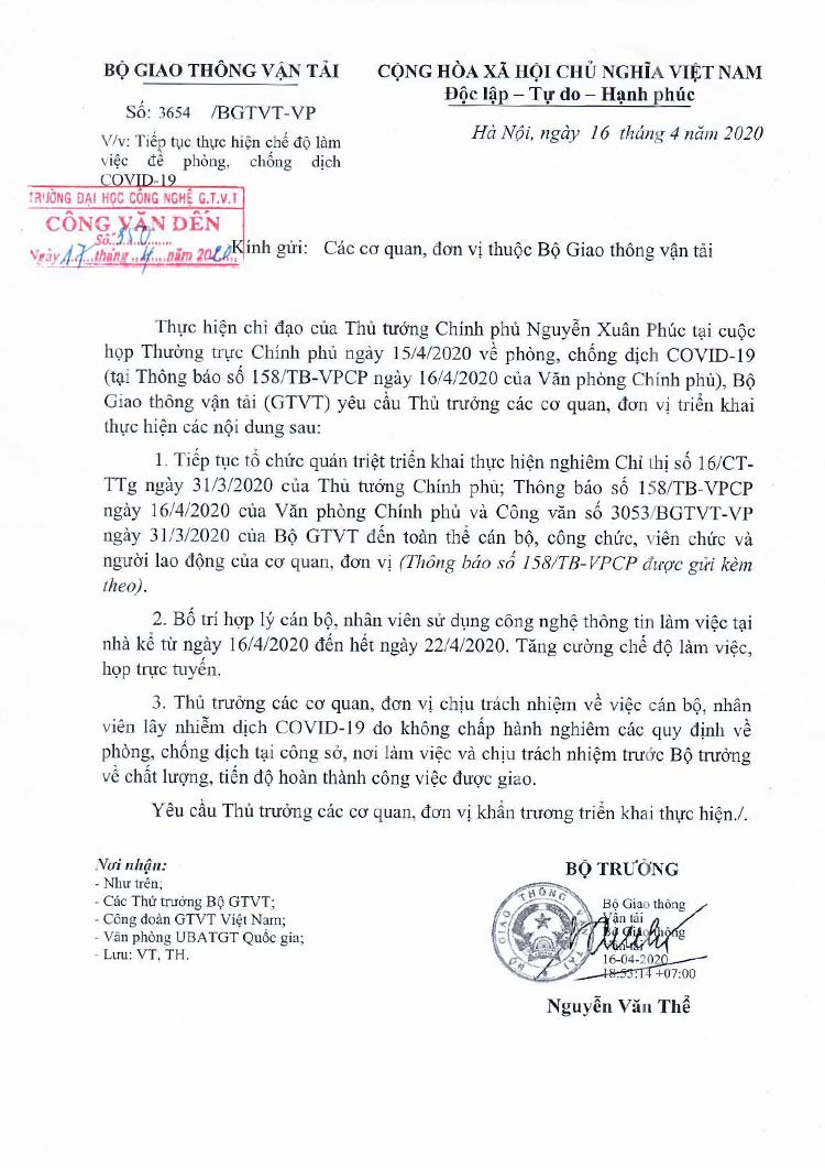 Công văn về việc tiếp tục thực hiện chế độ làm việc để phòng, chống dịch COVID-19