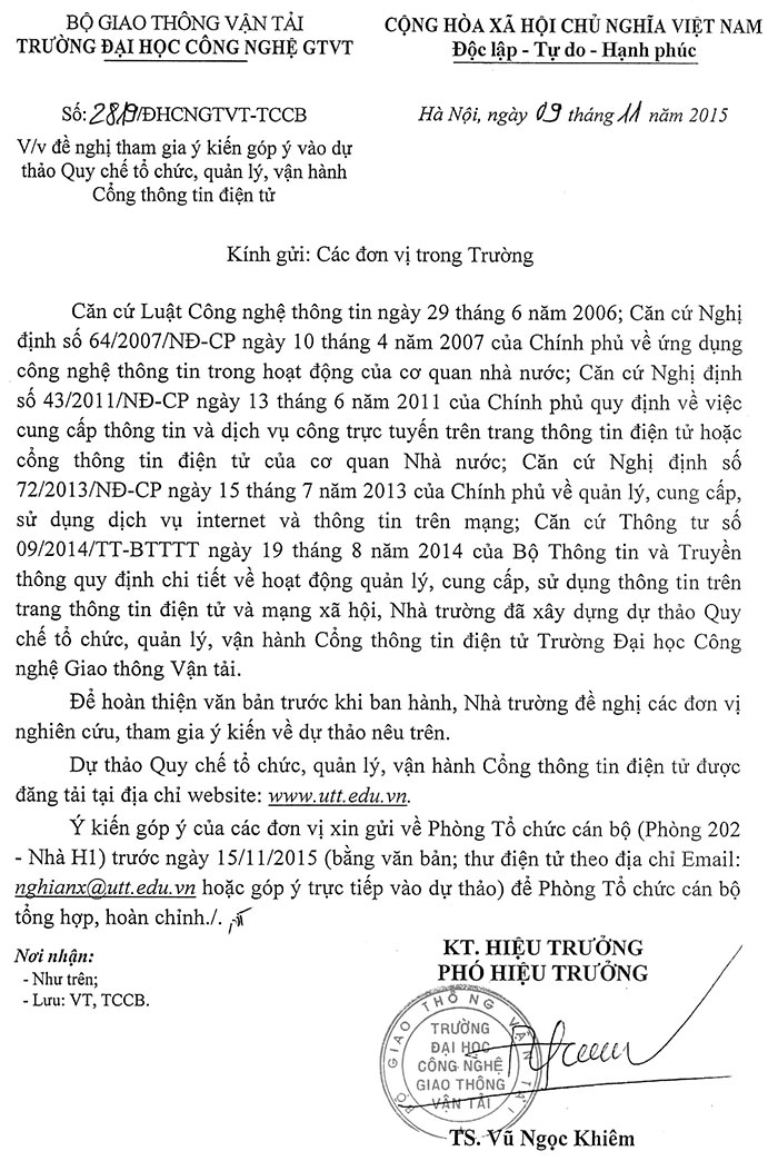 Đề nghị tham gia ý kiến đóng góp vào dự thảo Quy chế tổ chức, quản lý, vận hành Cổng thông tin điện tử