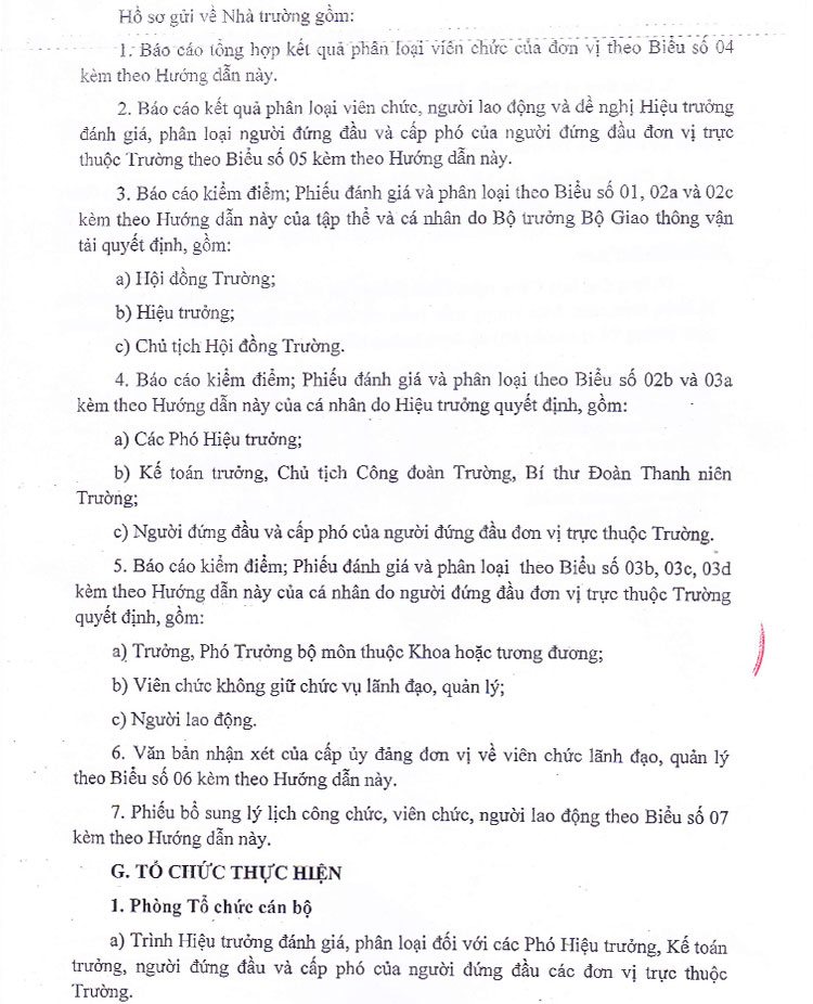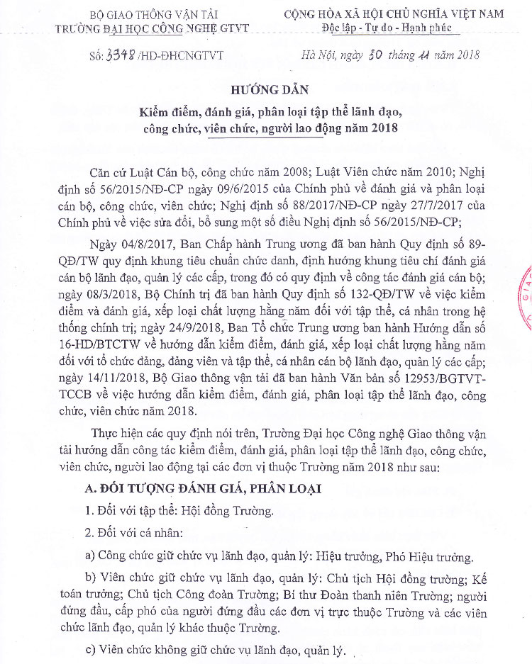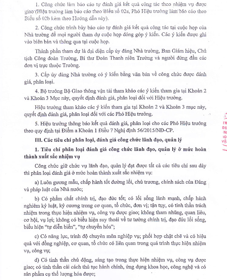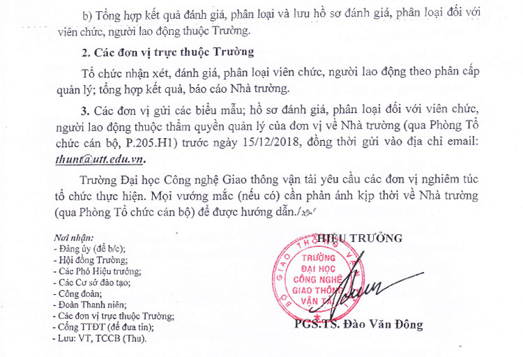 Hướng dẫn Kiểm điểm, đánh giá, phân loại tập thể lãnh đạo, công chức, viên chức, người lao động năm 2018 01/12/2018 21:12 File đính kèm Bieu-so-7_Phieu-bo-sung-ly-lich.doc Bieu-so-5_bao-cao-ket-qua-phan-loai-ve-de-nghi-phan-loai.doc Bieu-so-6.docx Bieu-so-3_vien-chuc.docx Bieu-so-4_-tong-hop-ket-qua-phan-loai.doc Bieu-so-1_-tap-the.docx Bieu-so-2_cong-chuc.docx Tin liên quan Thông báo về việc cập nhật thông tin Căn cước công dân cho người phụ thuộc 30/10/2025 Kế hoạch tổ chức Toạ đàm khoa học “Vai trò của Trí tuệ nhân tạo và công nghệ mới trong nâng cao hiệu quả nghiên cứu lĩnh vực tài chính kế toán” 24/10/2025 Thông báo về việc cử cán bộ tham gia khóa bồi dưỡng tại Học viện Ngoại giao 20/10/2025 Về việc lấy ý kiến góp ý vào dự thảo Quyết định ban hành Quy định về công tác thi đua, khen thưởng của Trường Đại học Công nghệ GTVT 09/10/2025 Thông báo về việc thống kê khối lượng hoạt động phục vụ cộng đồng của giảng viên năm học 2024-2025 02/10/2025 Kê khai khối lượng hoạt động khoa học và công nghệ phục vụ thanh toán khối lượng thừa giờ năm học 2024-2025 01/10/2025 Tin nổi bật Bộ Xây dựng tổ chức Hội nghị công tác đào tạo khối các trường đại học thuộc Bộ 06/11/2025 17:11 UTT Awards 2025: Khi người học nói lời tri ân những người Tận tâm- Tận hiến vì UTT 29/10/2025 14:10 UTT ra mắt Mạng lưới trung tâm đào tạo xuất sắc và tài năng trong lĩnh vực Công nghệ giao thông và Hạ tầng tiên... 10/10/2025 13:10 Thông tin mới nhất Bộ Xây dựng tổ chức Hội nghị công tác đào tạo khối các trường đại học thuộc Bộ 06/11/2025 17:11 Đại hội Hội Cựu chiến binh Trường Đại học Công nghệ GTVT nhiệm kỳ 2025-2030 04/11/2025 15:11 Sinh viên chuyên ngành Trí tuệ nhân tạo & Giao thông thông minh UTT: Kiến tạo tương lai cùng doanh nghiệp 04/11/2025 08:11 Vượt lên nghịch cảnh, em Trần Văn Dũng viết tiếp ước mơ khi đến với Trường Đại học Công nghệ GTVT 03/11/2025 14:11 UTT thúc đẩy hợp tác với các đối tác Úc trong đào tạo, nghiên cứu và hỗ trợ sinh viên 30/10/2025 15:10