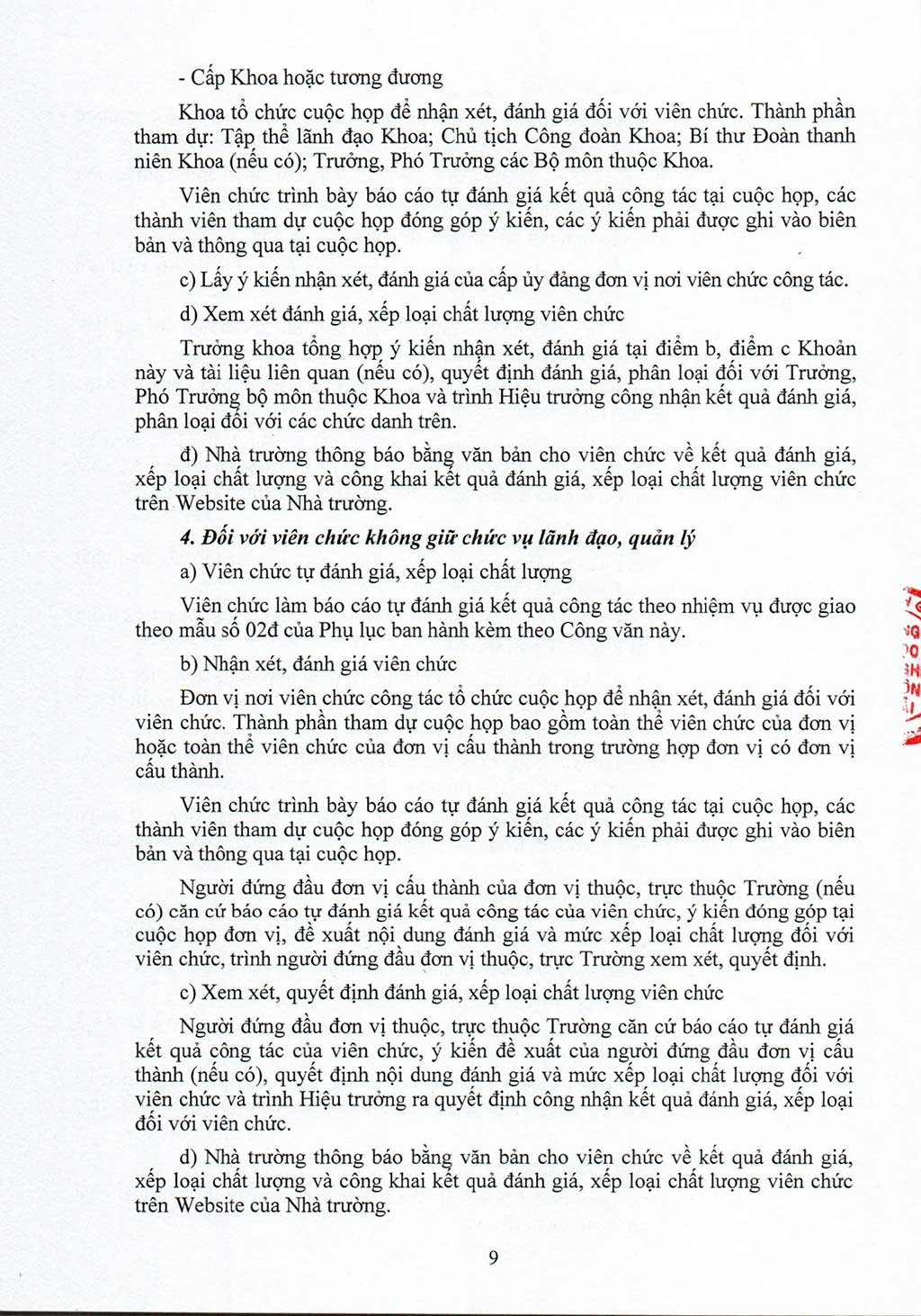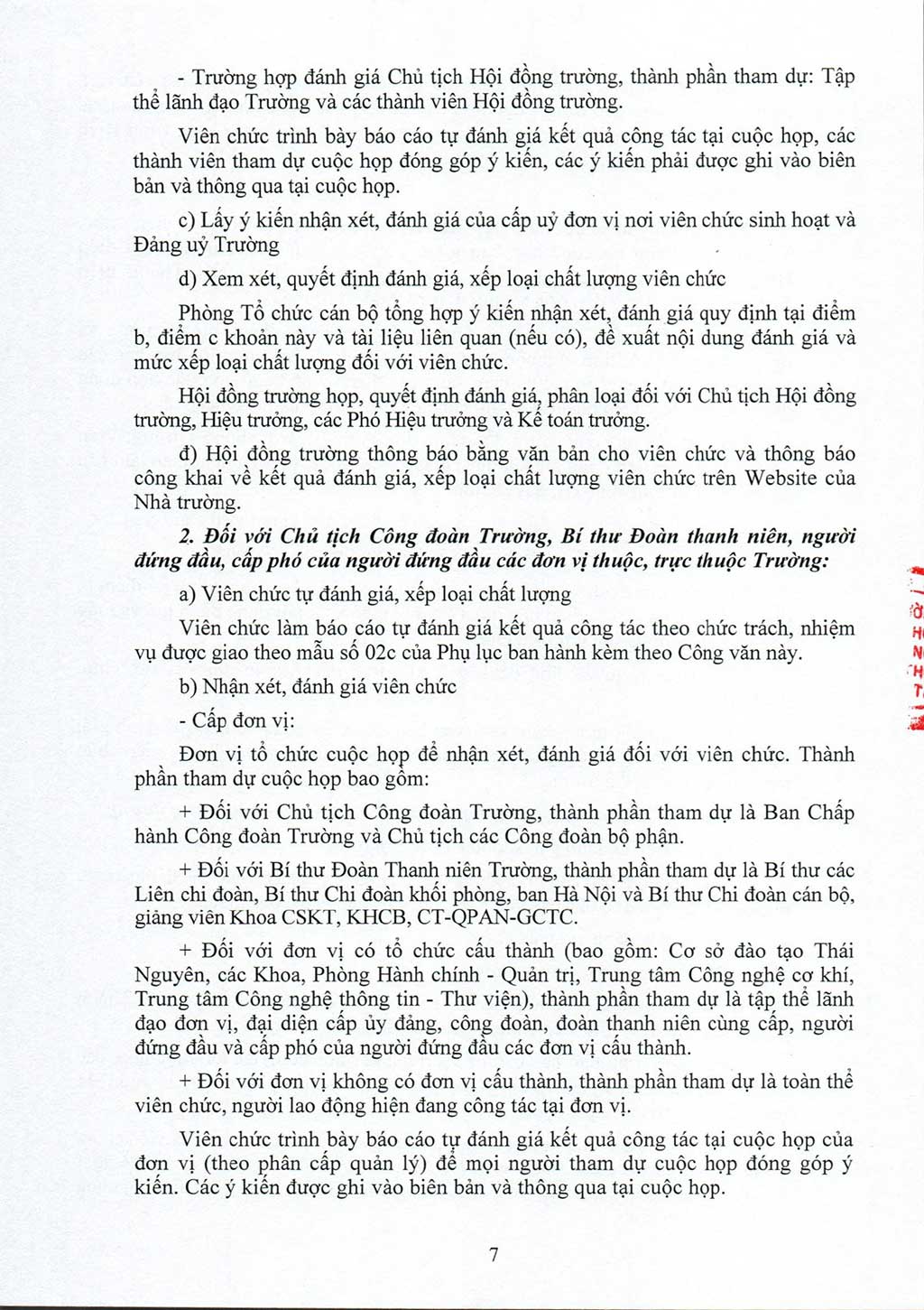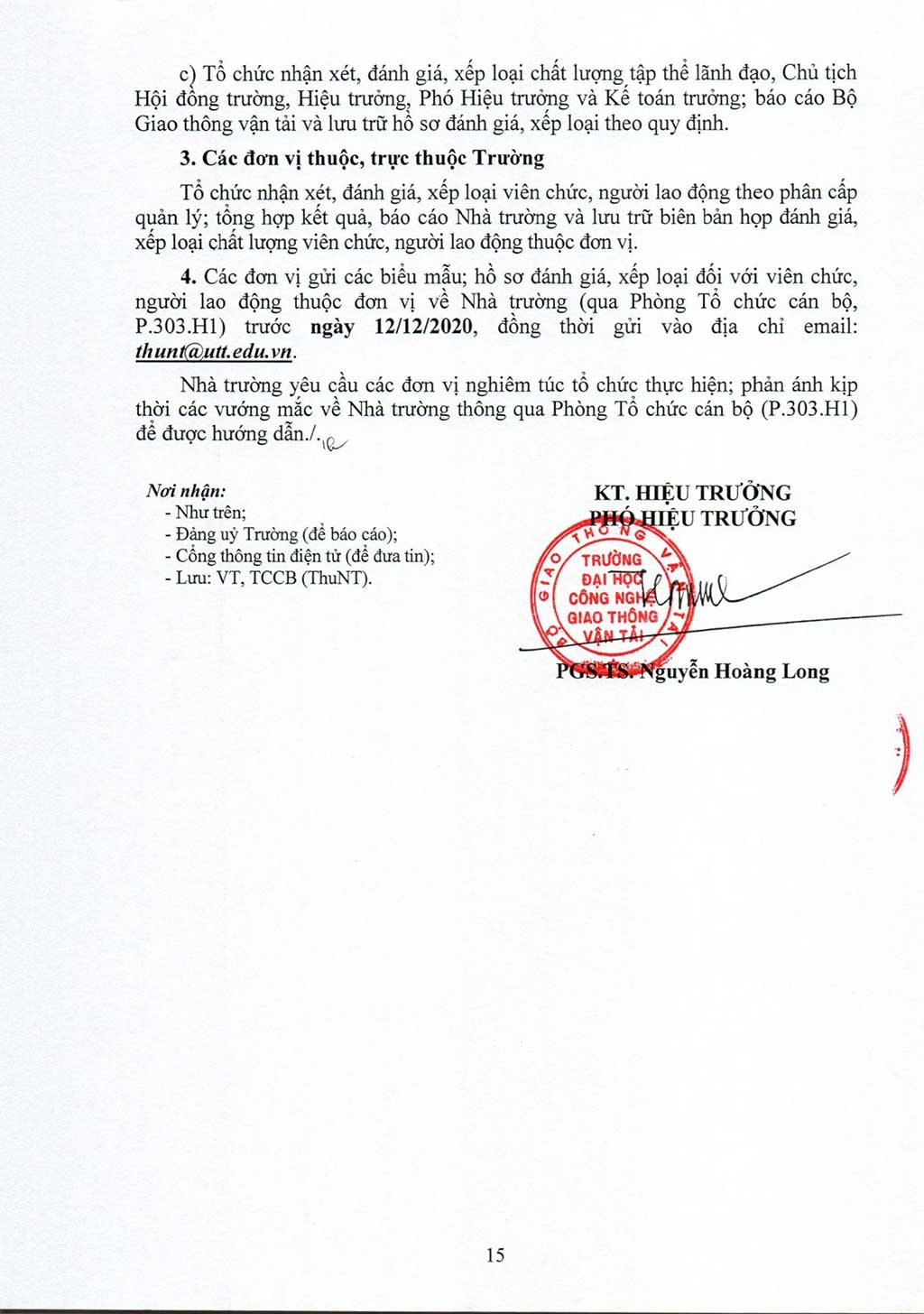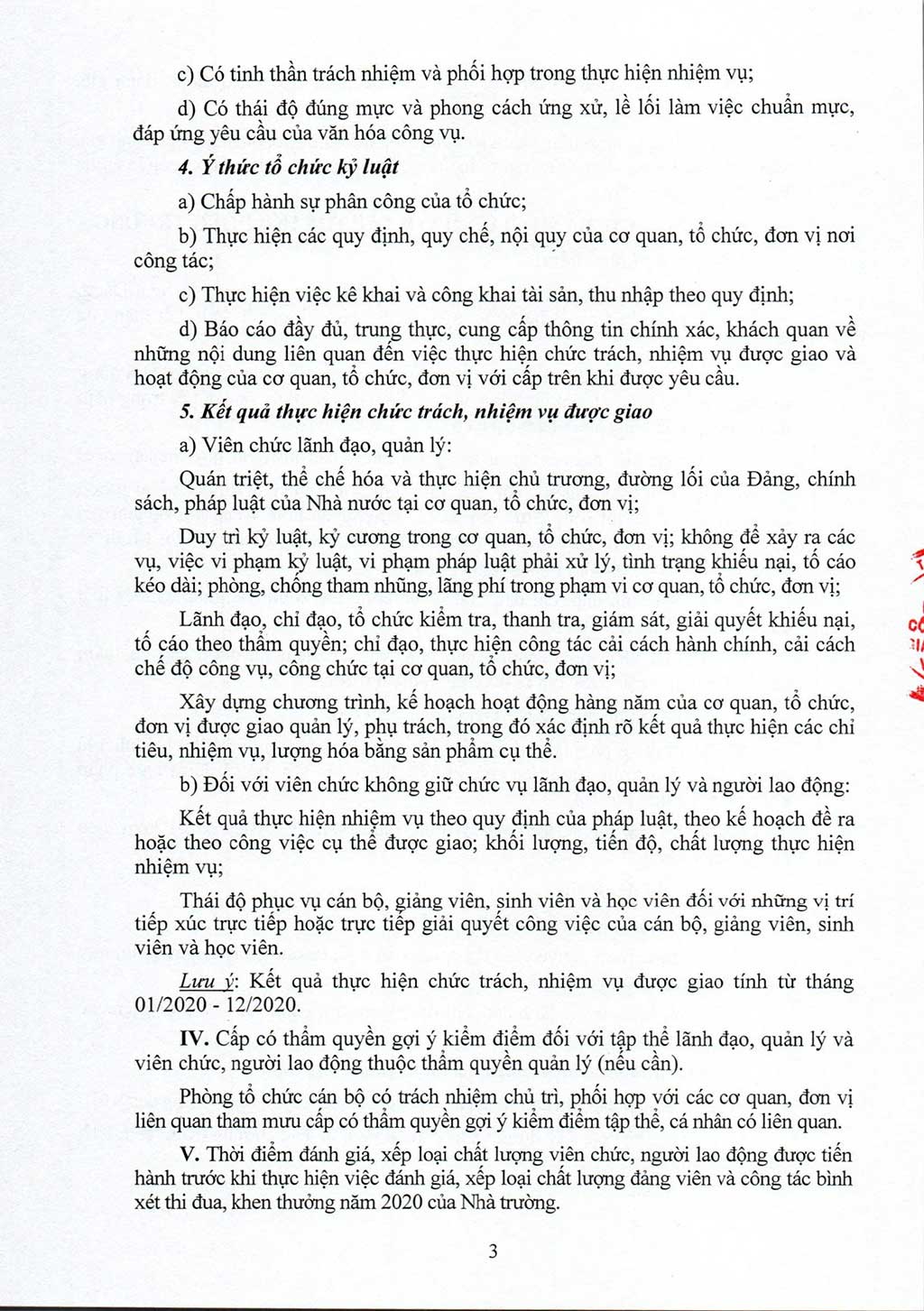 Hướng dẫn kiểm điểm, đánh giá, xếp loại chất lượng tập thể lãnh đạo, viên chức, người lao động năm 2020 25/11/2020 10:11 File đính kèm Bieu-so-5---Nhan-xet-cap-uy.docx Bieu-so-1---Tap-the.docx Bieu-so-6---Phieu-bo-sung-ly-lich.doc Bieu-so-2---Vien-chuc.docx Bieu-so-3---Tong-hop-ket-qua-phan-loai.doc Bieu-so-4---Bao-cao-ket-qua-phan-loai-ve-de-nghi-phan-loai.doc Huong-dan-kiem-diem-vien-chuc-2020.pdf Tin liên quan Thông báo về việc cập nhật thông tin Căn cước công dân cho người phụ thuộc 30/10/2025 Kế hoạch tổ chức Toạ đàm khoa học “Vai trò của Trí tuệ nhân tạo và công nghệ mới trong nâng cao hiệu quả nghiên cứu lĩnh vực tài chính kế toán” 24/10/2025 Thông báo về việc cử cán bộ tham gia khóa bồi dưỡng tại Học viện Ngoại giao 20/10/2025 Về việc lấy ý kiến góp ý vào dự thảo Quyết định ban hành Quy định về công tác thi đua, khen thưởng của Trường Đại học Công nghệ GTVT 09/10/2025 Thông báo về việc thống kê khối lượng hoạt động phục vụ cộng đồng của giảng viên năm học 2024-2025 02/10/2025 Kê khai khối lượng hoạt động khoa học và công nghệ phục vụ thanh toán khối lượng thừa giờ năm học 2024-2025 01/10/2025 Tin nổi bật UTT Awards 2025: Khi người học nói lời tri ân những người Tận tâm- Tận hiến vì UTT 29/10/2025 14:10 UTT ra mắt Mạng lưới trung tâm đào tạo xuất sắc và tài năng trong lĩnh vực Công nghệ giao thông và Hạ tầng tiên... 10/10/2025 13:10 Thông tin mới nhất Đại hội Hội Cựu chiến binh Trường Đại học Công nghệ GTVT nhiệm kỳ 2025-2030 04/11/2025 15:11 Sinh viên chuyên ngành Trí tuệ nhân tạo & Giao thông thông minh UTT: Kiến tạo tương lai cùng doanh nghiệp 04/11/2025 08:11 Vượt lên nghịch cảnh, em Trần Văn Dũng viết tiếp ước mơ khi đến với Trường Đại học Công nghệ GTVT 03/11/2025 14:11 UTT thúc đẩy hợp tác với các đối tác Úc trong đào tạo, nghiên cứu và hỗ trợ sinh viên 30/10/2025 15:10 Thông báo về việc cập nhật thông tin Căn cước công dân cho người phụ thuộc 30/10/2025 15:10