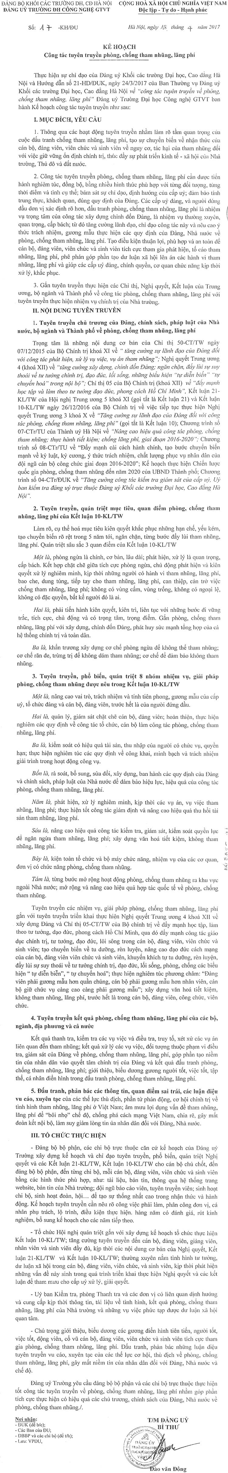 Kế hoạch Công tác tuyên truyền phòng, chống tham nhũng, lãng phí