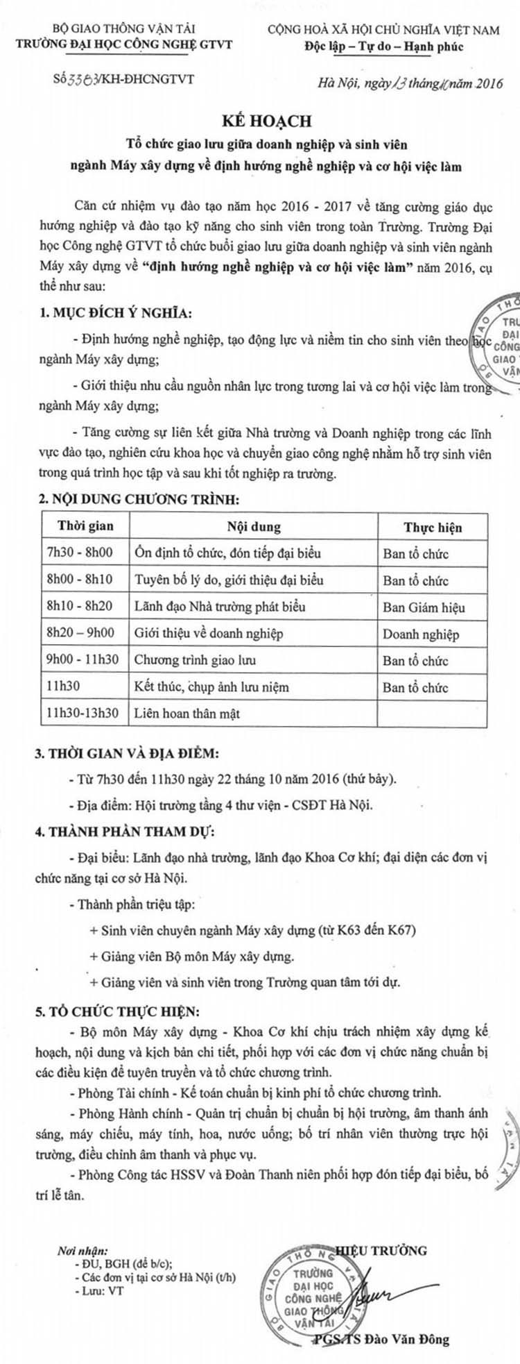 Kế hoạch giao lưu giữa doanh nghiệp và sinh viên ngành Máy xây dựng về định hướng nghề nghiệp và cơ hội việc làm 17/10/2016 09:10