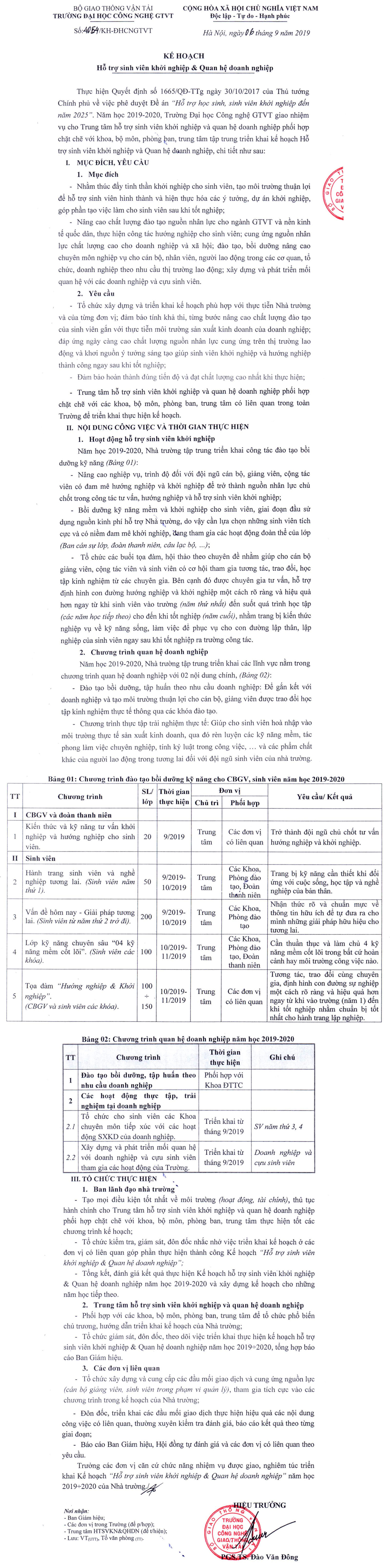 Kế hoạch Hỗ trợ sinh viên khởi nghiệp & Quan hệ doanh nghiệp