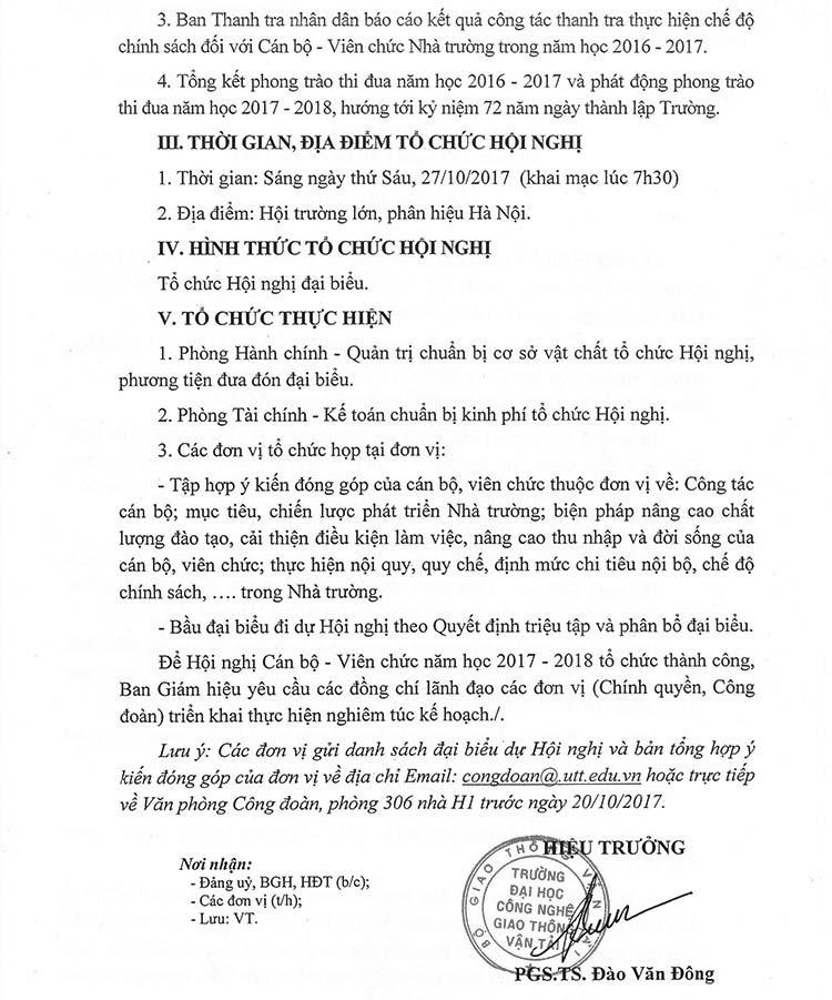 Về việc lấy ý kiến góp ý vào dự thảo Quyết định ban hành Quy định về công tác thi đua, khen thưởng của Trường Đại học Công nghệ GTVT