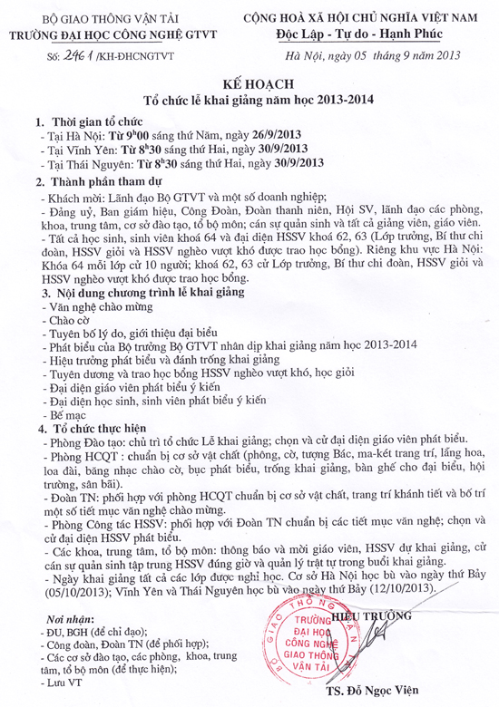 Kế hoạch tổ chức lễ khai giảng năm học 2013 - 2014